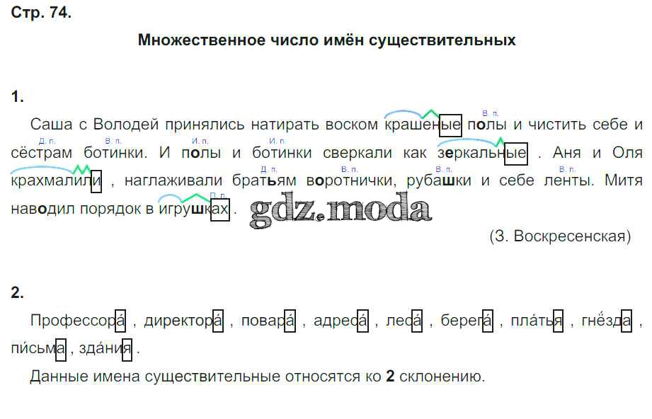 ГДЗ решение к заданию № 74 Русский язык 4 класс рабочая тетрадь Тихомирова Е.М. (к уч. Рамзаевой) Экзамен 2014 ФГОС бесплатно на гдз.мода!