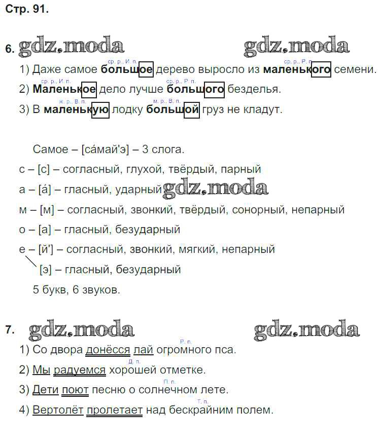 ГДЗ решение к заданию № 91 Русский язык 4 класс рабочая тетрадь Тихомирова Е.М. (к уч. Рамзаевой) Экзамен 2014 ФГОС бесплатно на гдз.мода!