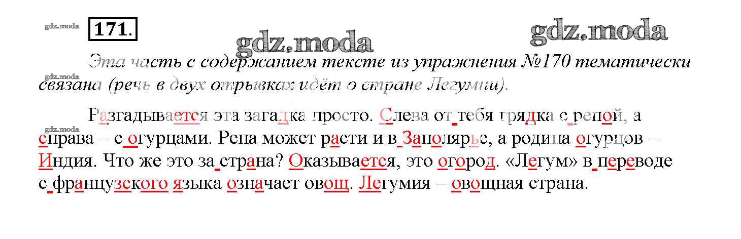ОТВЕТ на задание № 171 Учебник по Русскому языку 4 класс Желтовская Планета знаний