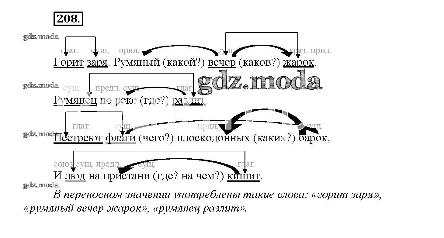ОТВЕТ на задание № 208 Учебник по Русскому языку 4 класс Желтовская Планета знаний