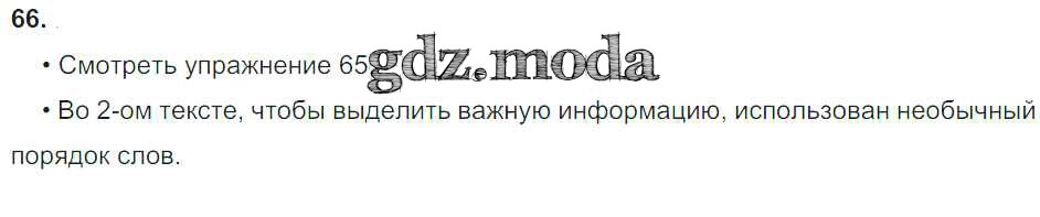 ОТВЕТ на задание № 66 Учебник по Русскому языку 4 класс Желтовская Планета знаний