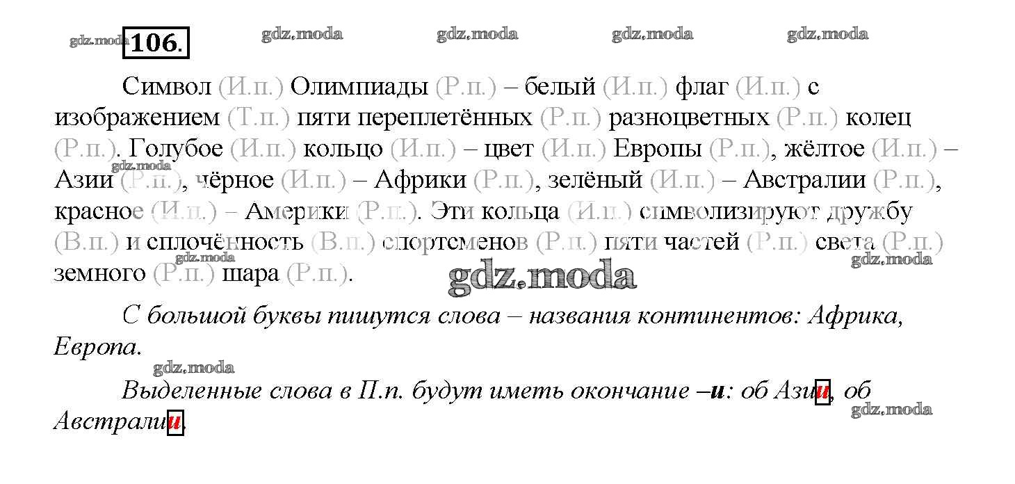 ОТВЕТ на задание № 106 Учебник по Русскому языку 4 класс Желтовская Планета знаний
