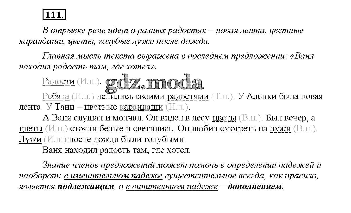 ОТВЕТ на задание № 111 Учебник по Русскому языку 4 класс Желтовская Планета знаний