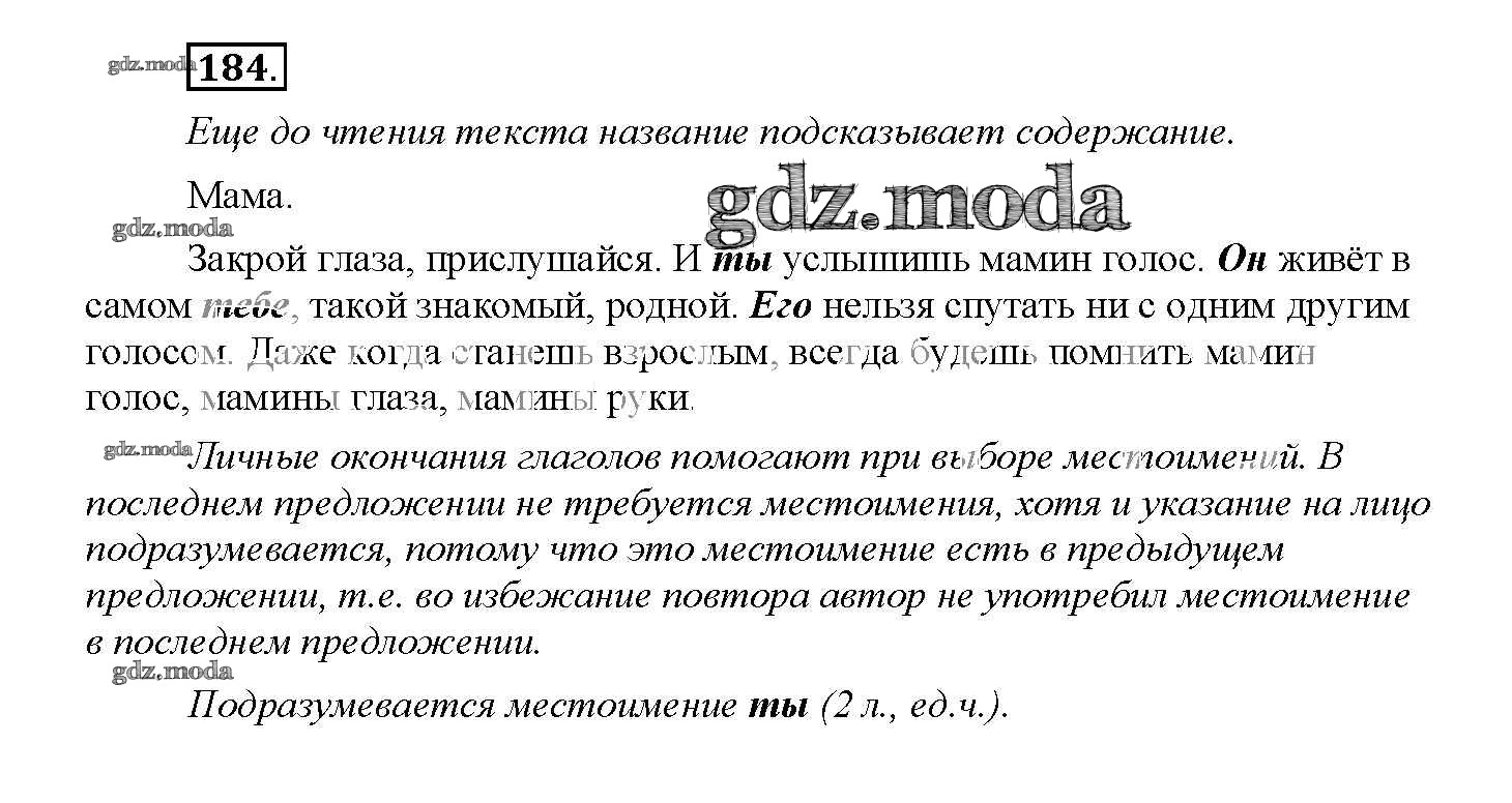 ОТВЕТ на задание № 184 Учебник по Русскому языку 4 класс Желтовская Планета знаний