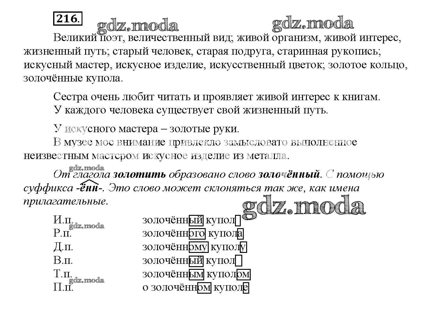 ОТВЕТ на задание № 216 Учебник по Русскому языку 4 класс Желтовская Планета знаний