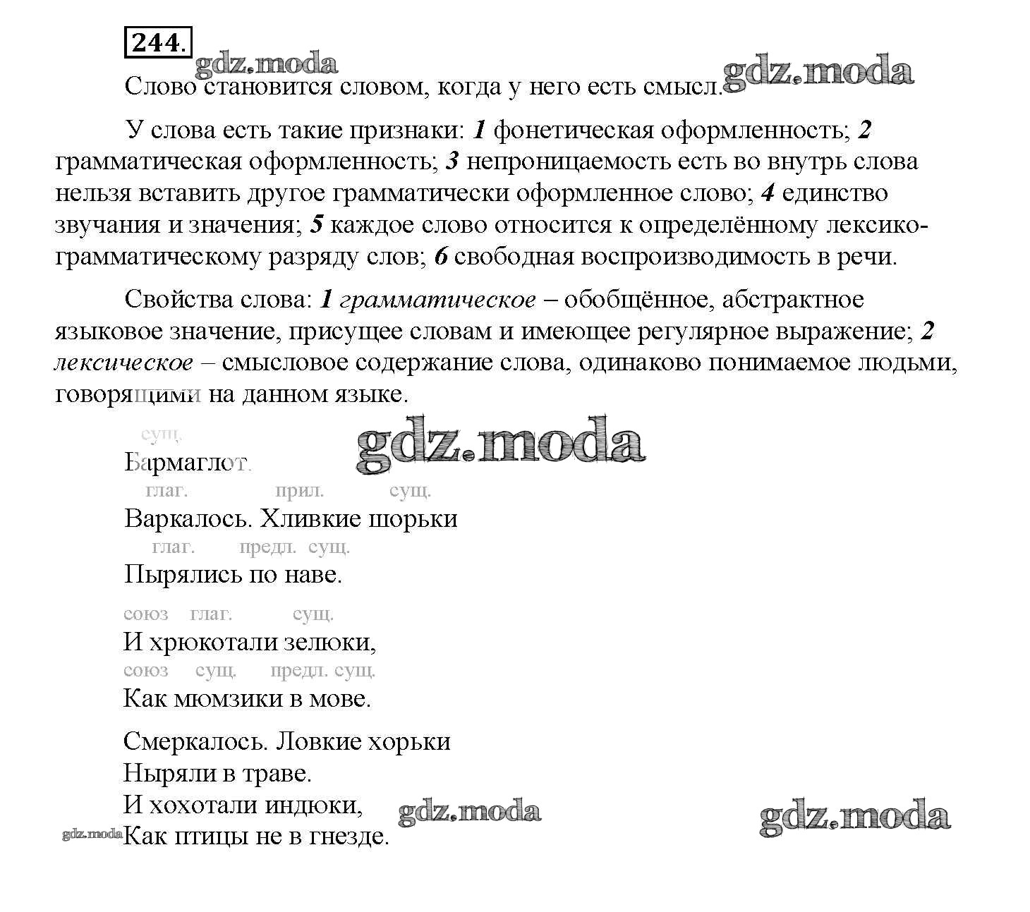 ОТВЕТ на задание № 244 Учебник по Русскому языку 4 класс Желтовская Планета знаний
