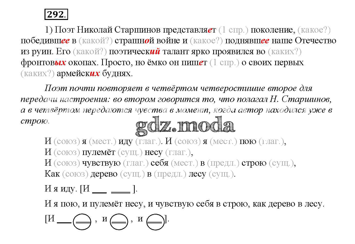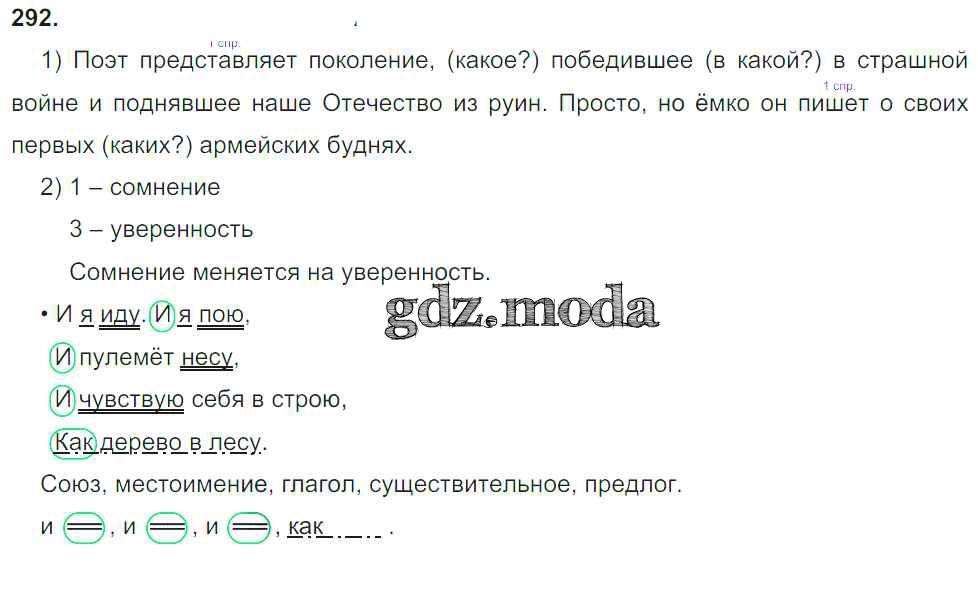 ОТВЕТ на задание № 292 Учебник по Русскому языку 4 класс Желтовская Планета знаний