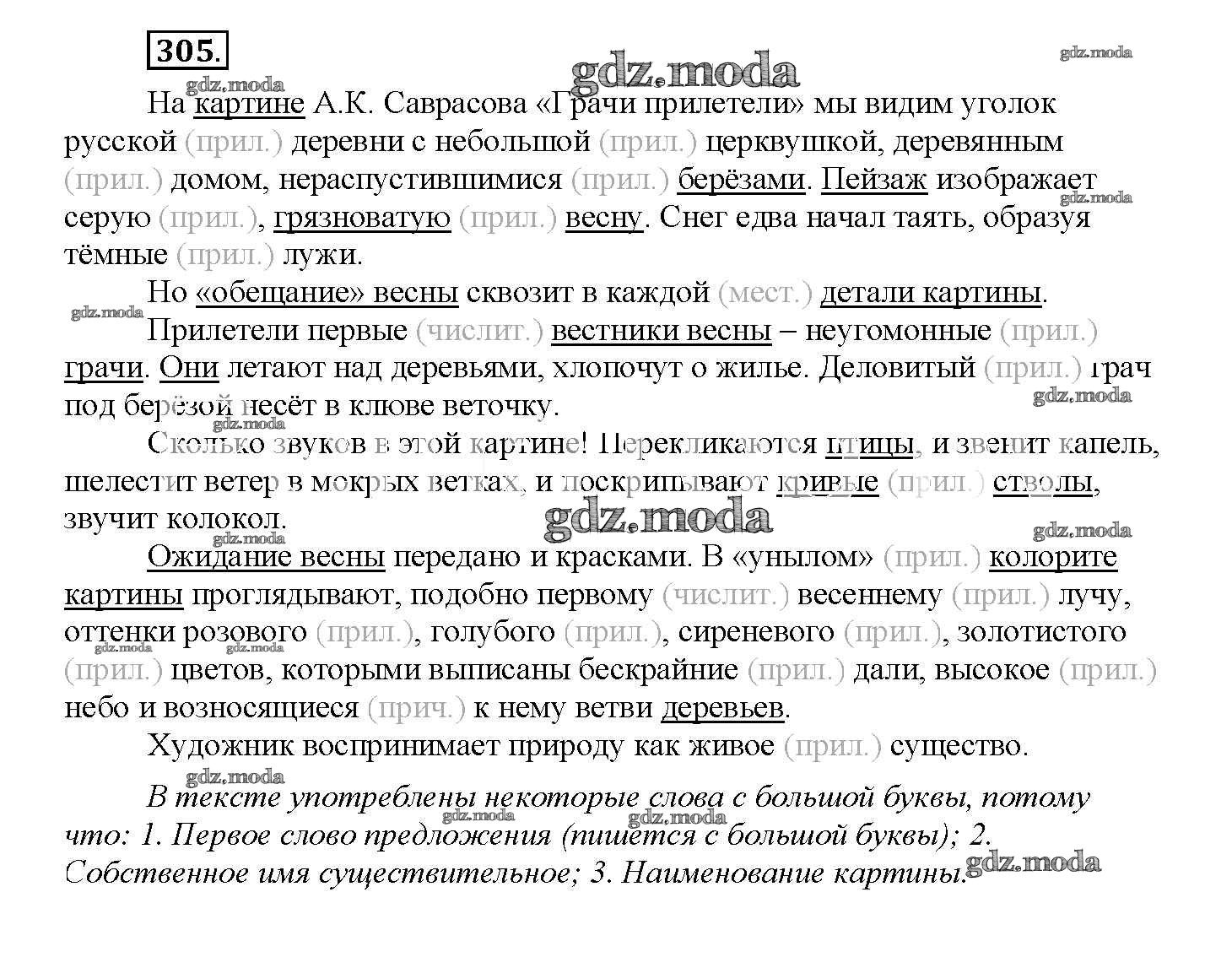 ОТВЕТ на задание № 305 Учебник по Русскому языку 4 класс Желтовская Планета знаний
