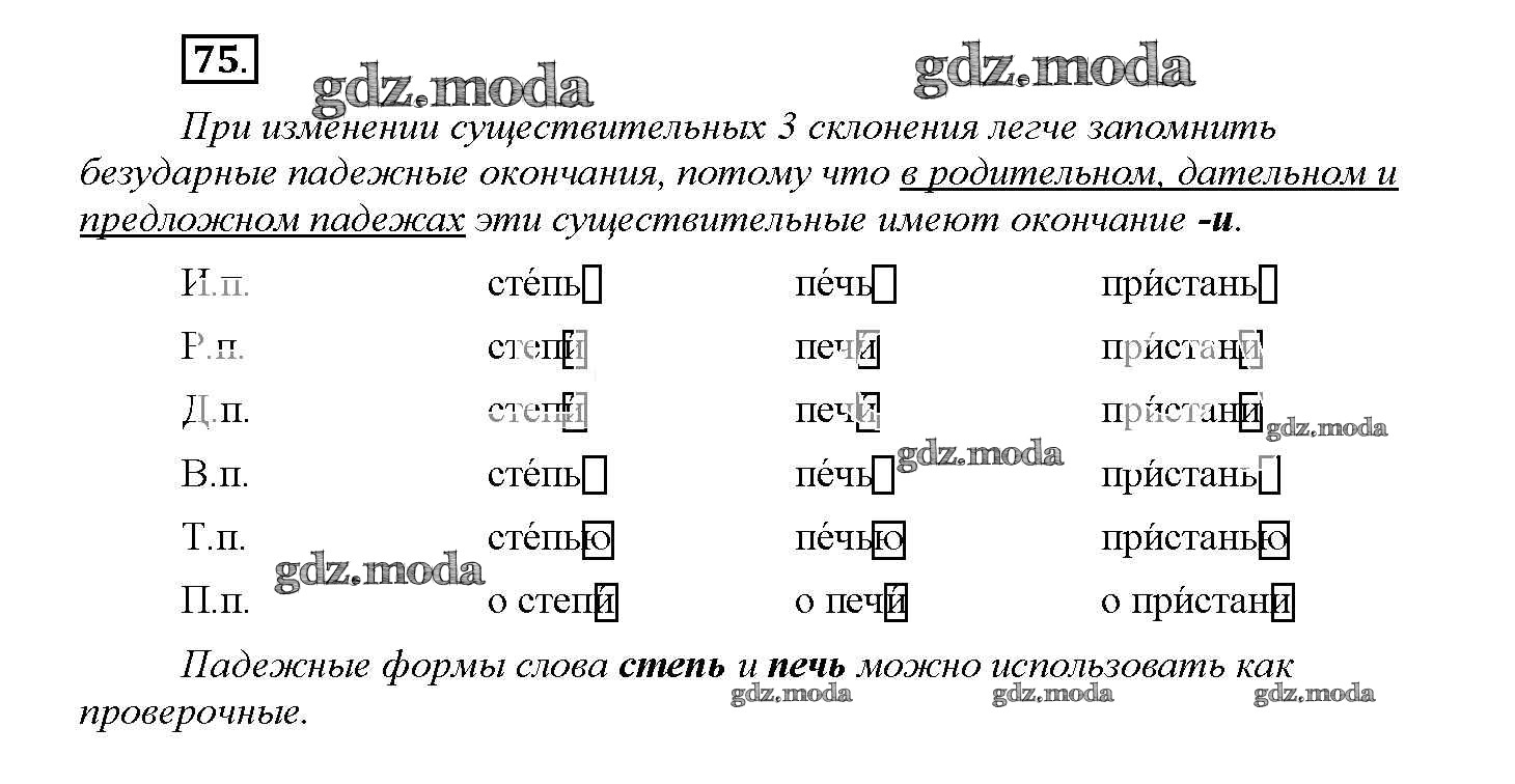 ОТВЕТ на задание № 75 Учебник по Русскому языку 4 класс Желтовская Планета знаний