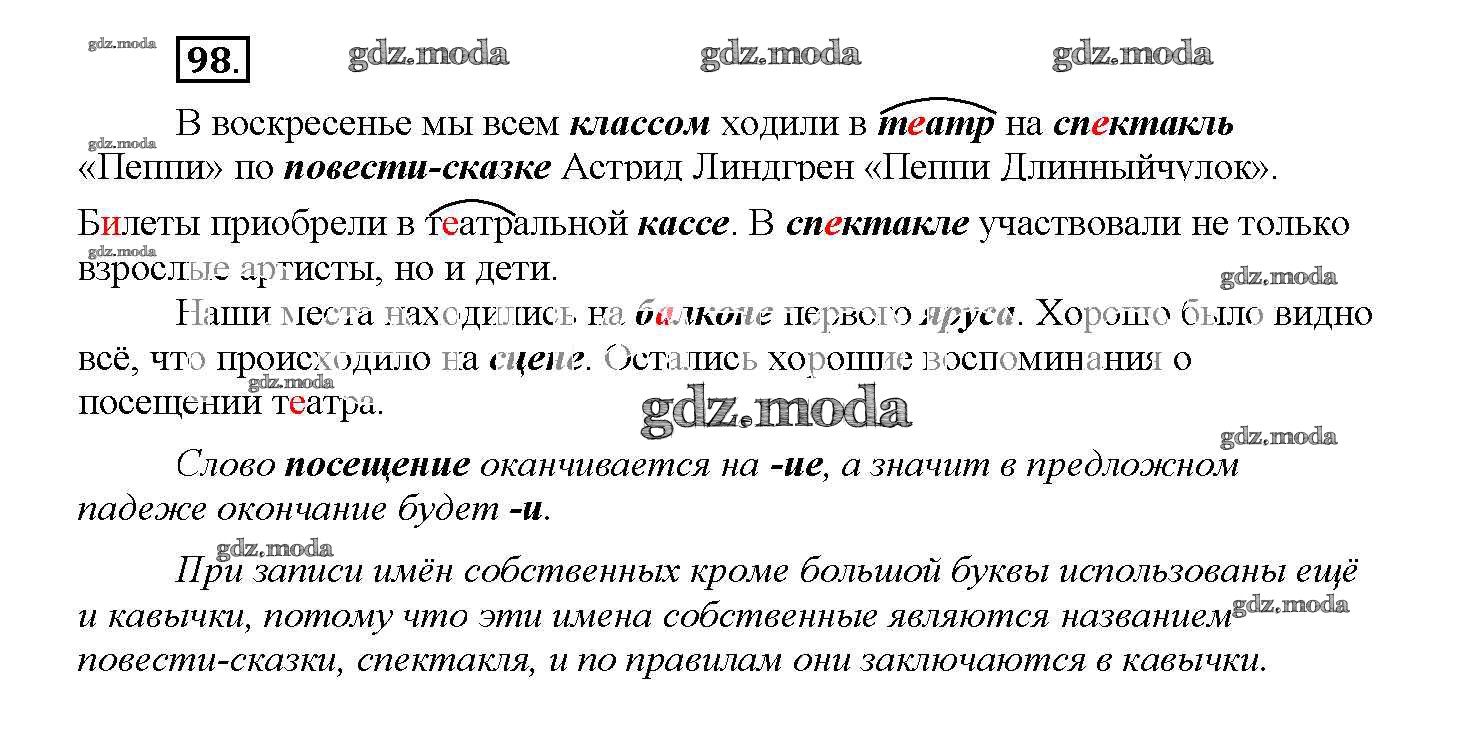 ОТВЕТ на задание № 98 Учебник по Русскому языку 4 класс Желтовская Планета знаний