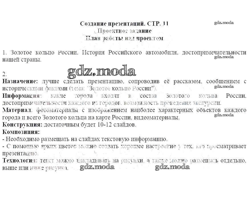 ОТВЕТ на задание № 11 Рабочая тетрадь по Технологии 4 класс Лутцева Школа России