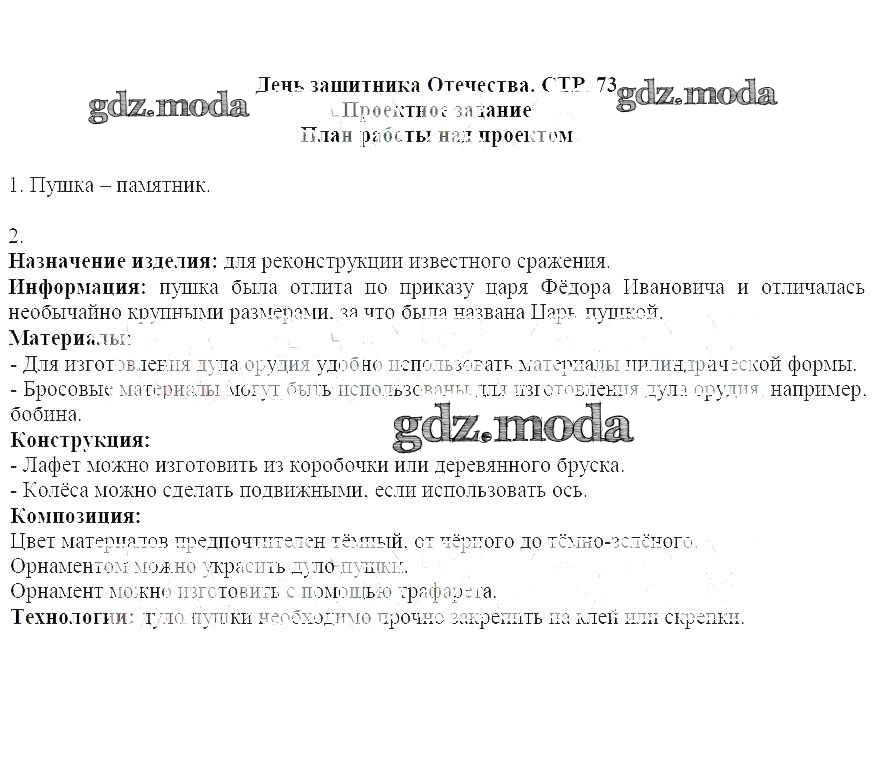 ГДЗ решение к заданию № 73 Технология 4 класс рабочая тетрадь Лутцева Е. А. Просвещение 2019 ФГОС бесплатно на гдз.мода!