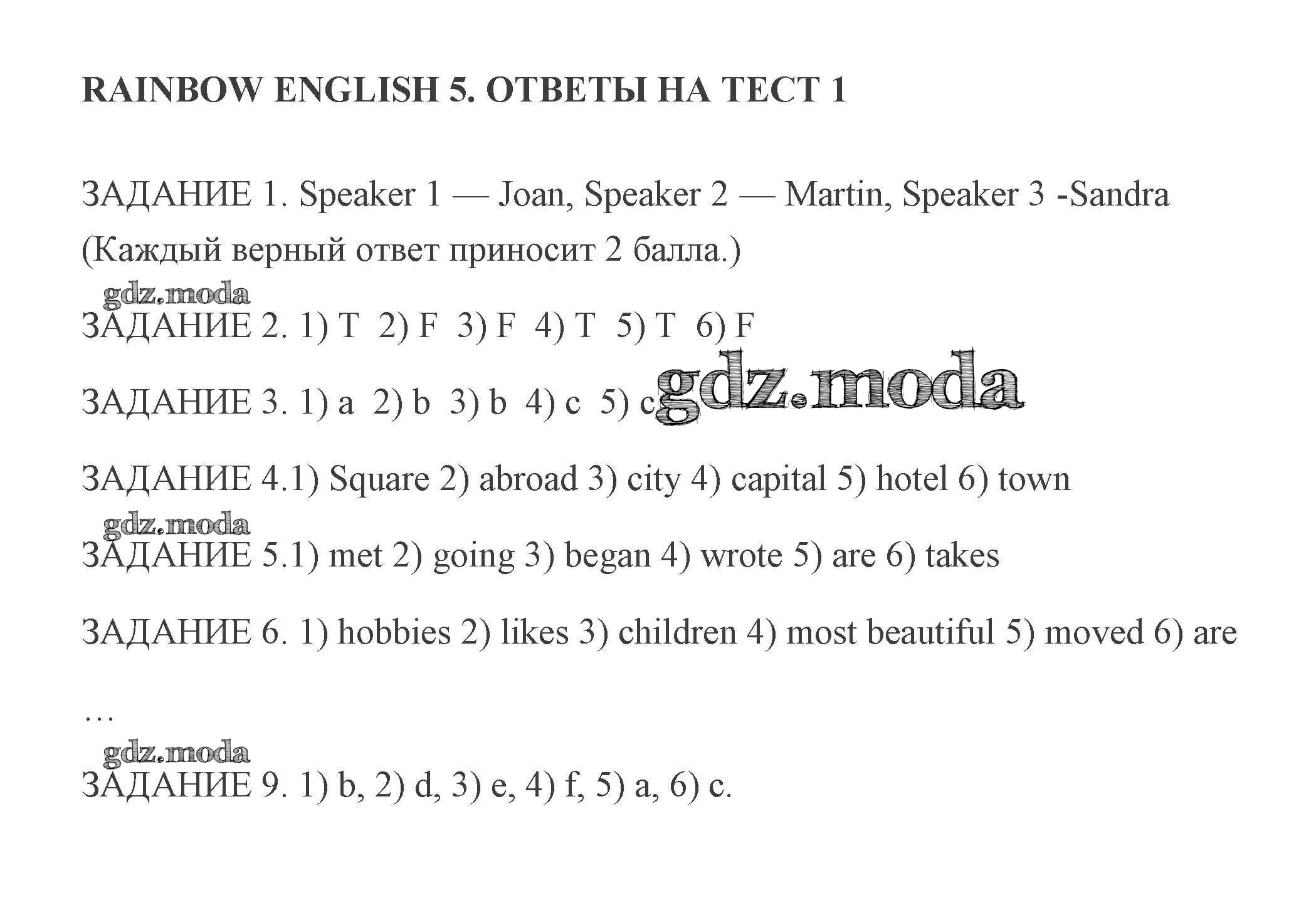 ОТВЕТ на задание № 1 Диагностические работы по Английскому языку 5 класс Афанасьева Rainbow