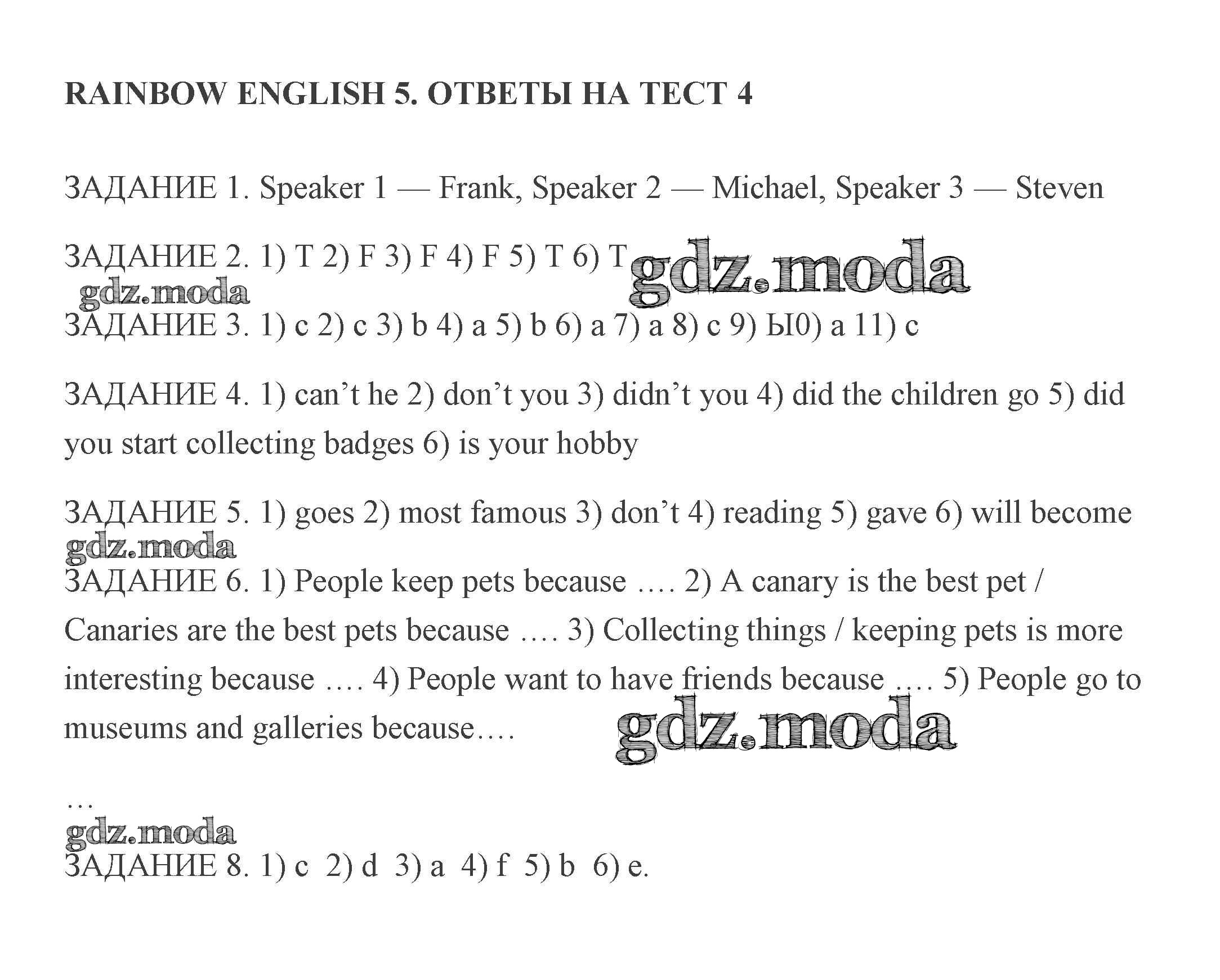 ОТВЕТ на задание № 4 Диагностические работы по Английскому языку 5 класс Афанасьева Rainbow