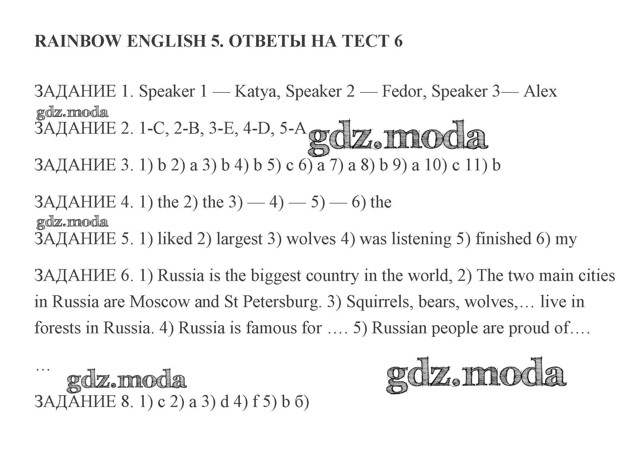 ГДЗ решение к заданию № 6 Английский язык 5 класс диагностические работы Афанасьева Rainbow Дрофа 2019 ФГОС бесплатно на гдз.мода!