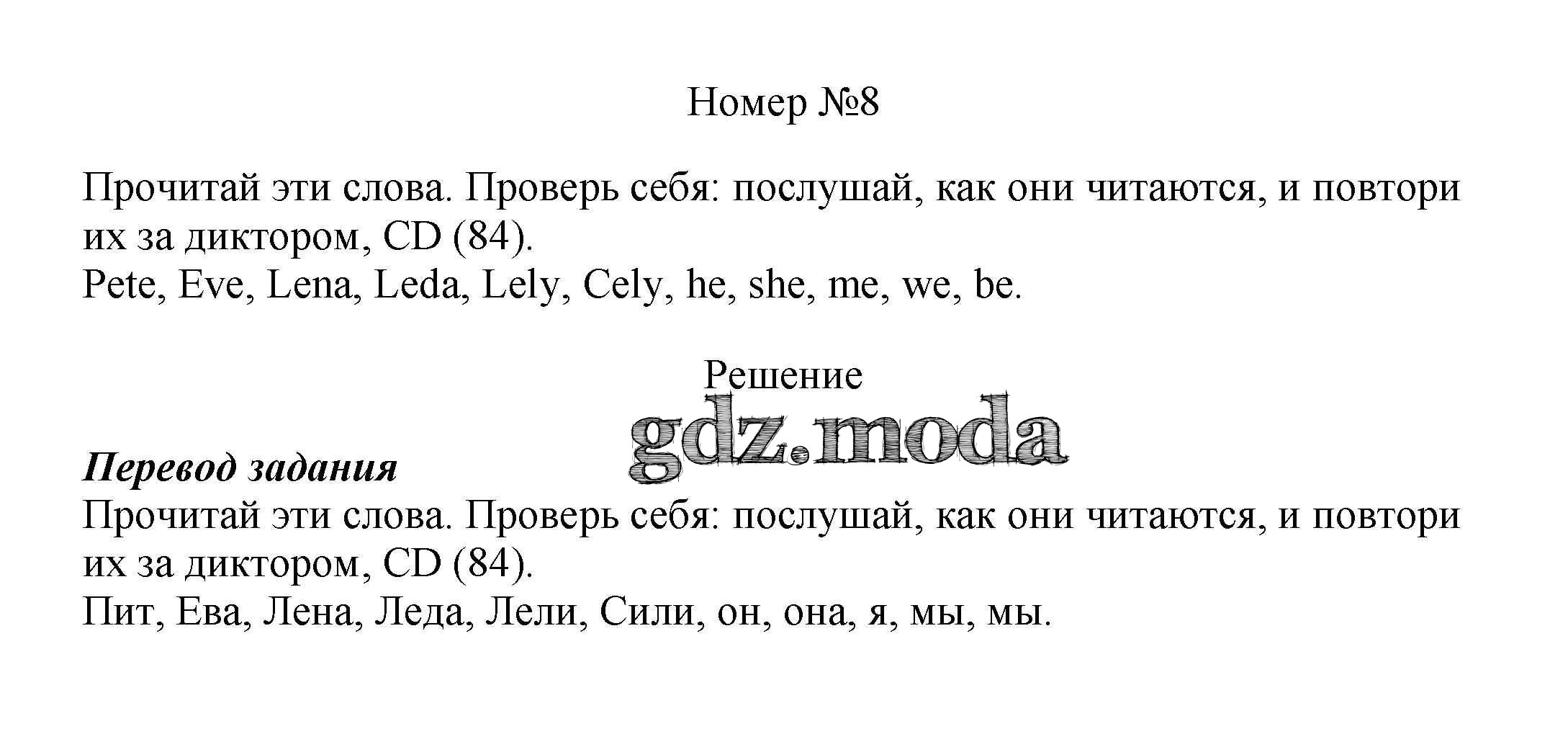 ГДЗ решение к заданию № 8 Английский язык как второй иностранный 5 класс Афанасьева О.В. Дрофа 2017 ФГОС бесплатно на гдз.мода!