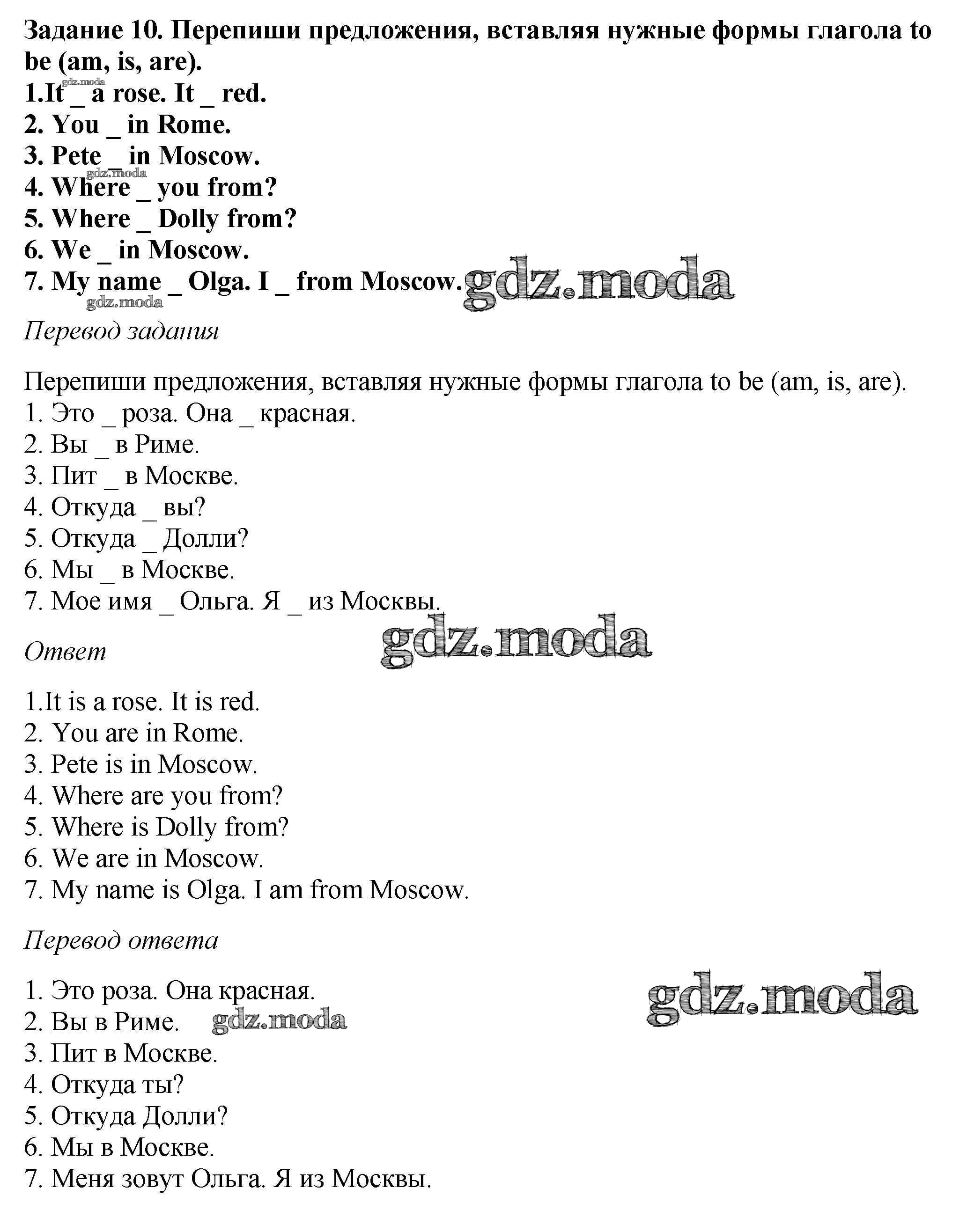 ГДЗ решение к заданию № 10 Английский язык как второй иностранный 5 класс Афанасьева О.В. Дрофа 2017 ФГОС бесплатно на гдз.мода!