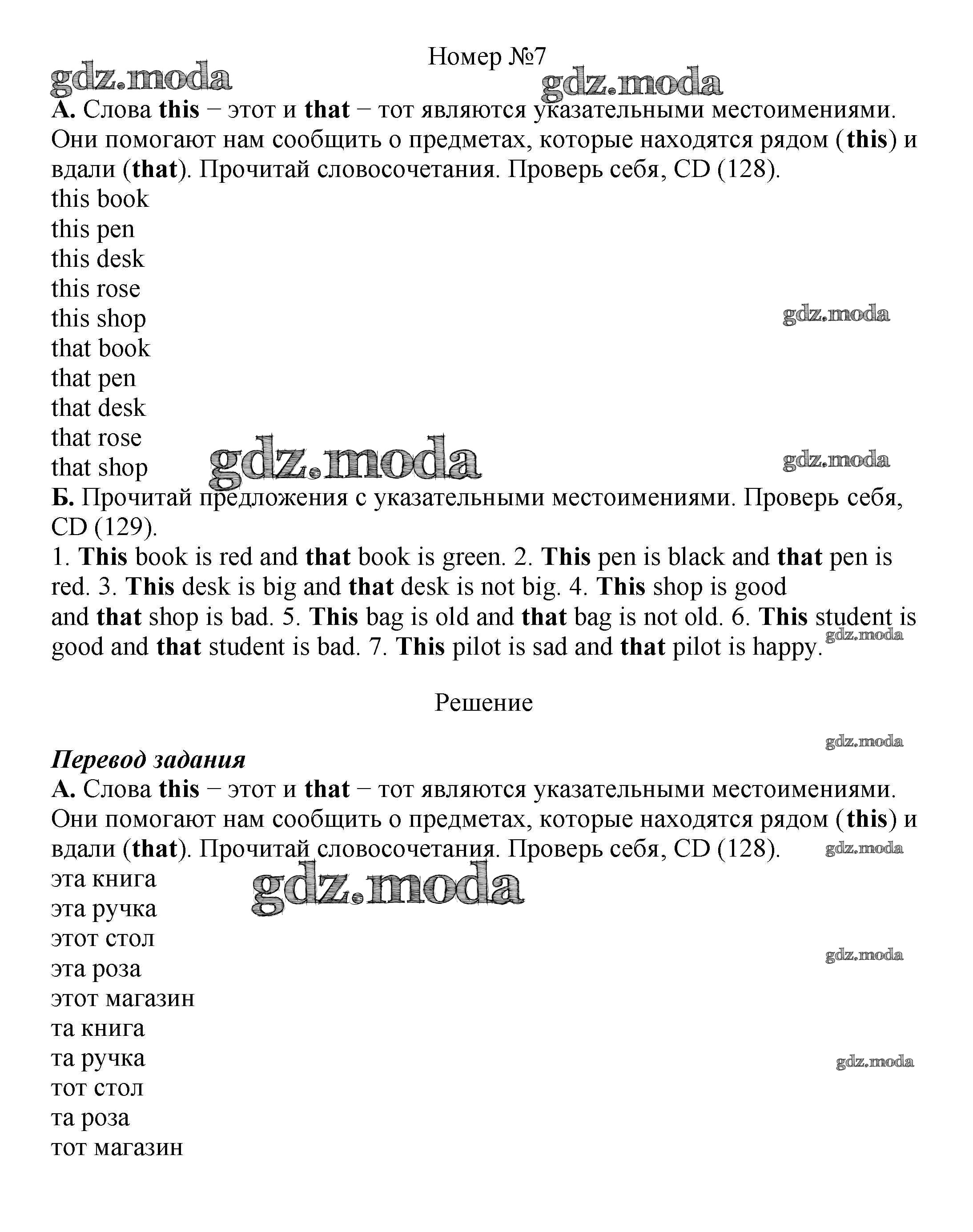ГДЗ решение к заданию № 7 Английский язык как второй иностранный 5 класс Афанасьева О.В. Дрофа 2017 ФГОС бесплатно на гдз.мода!