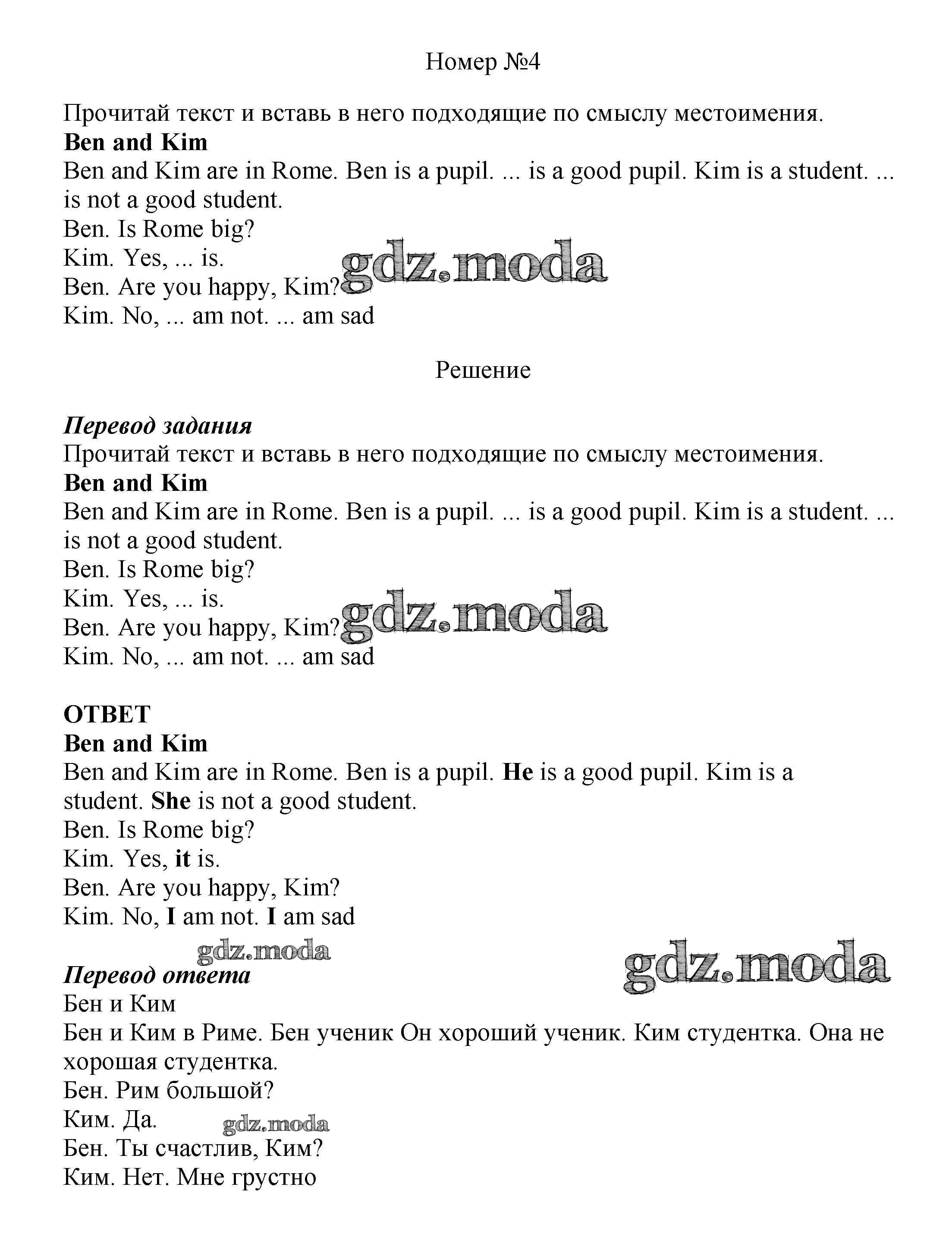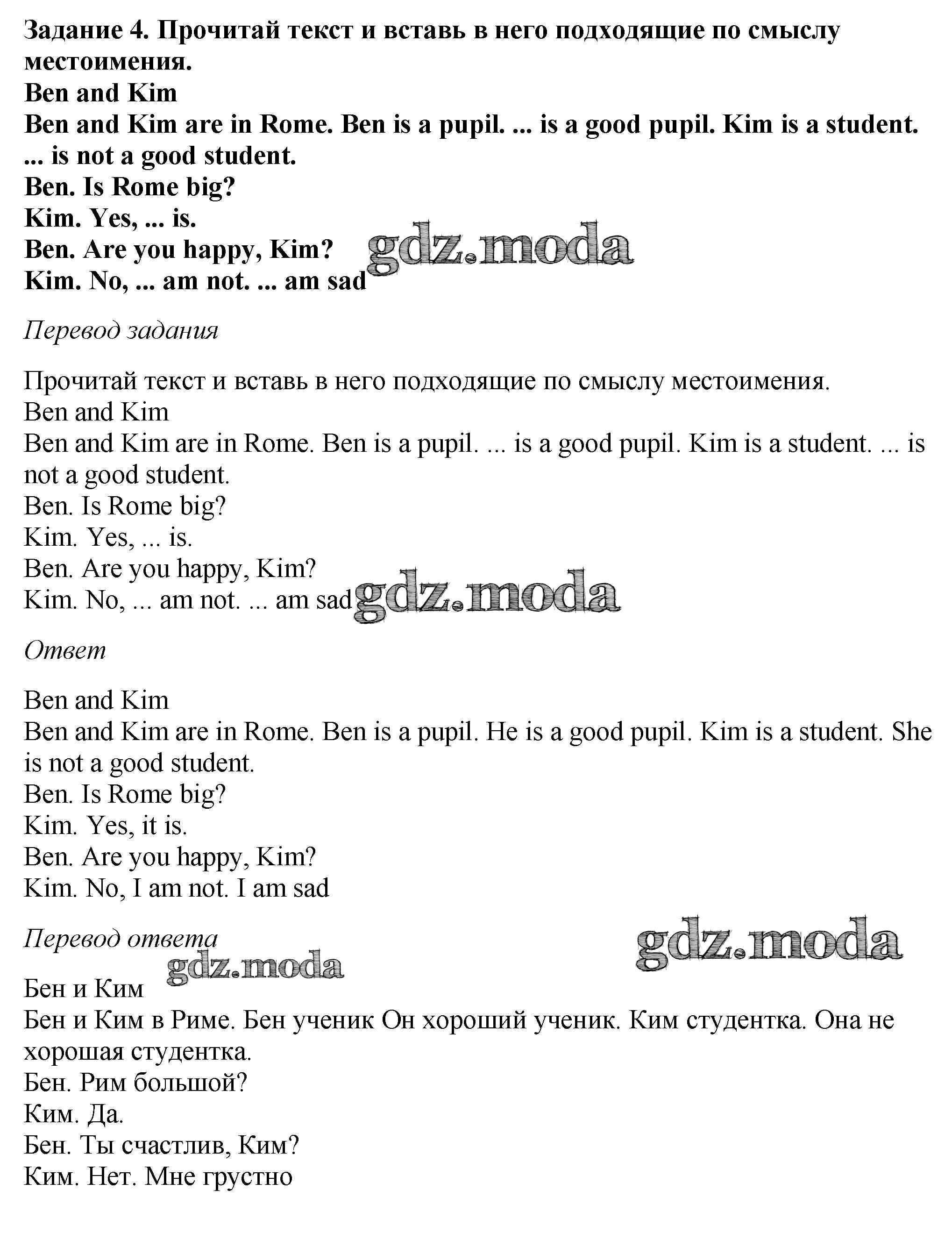 ГДЗ решение к заданию № 4 Английский язык как второй иностранный 5 класс Афанасьева О.В. Дрофа 2017 ФГОС бесплатно на гдз.мода!
