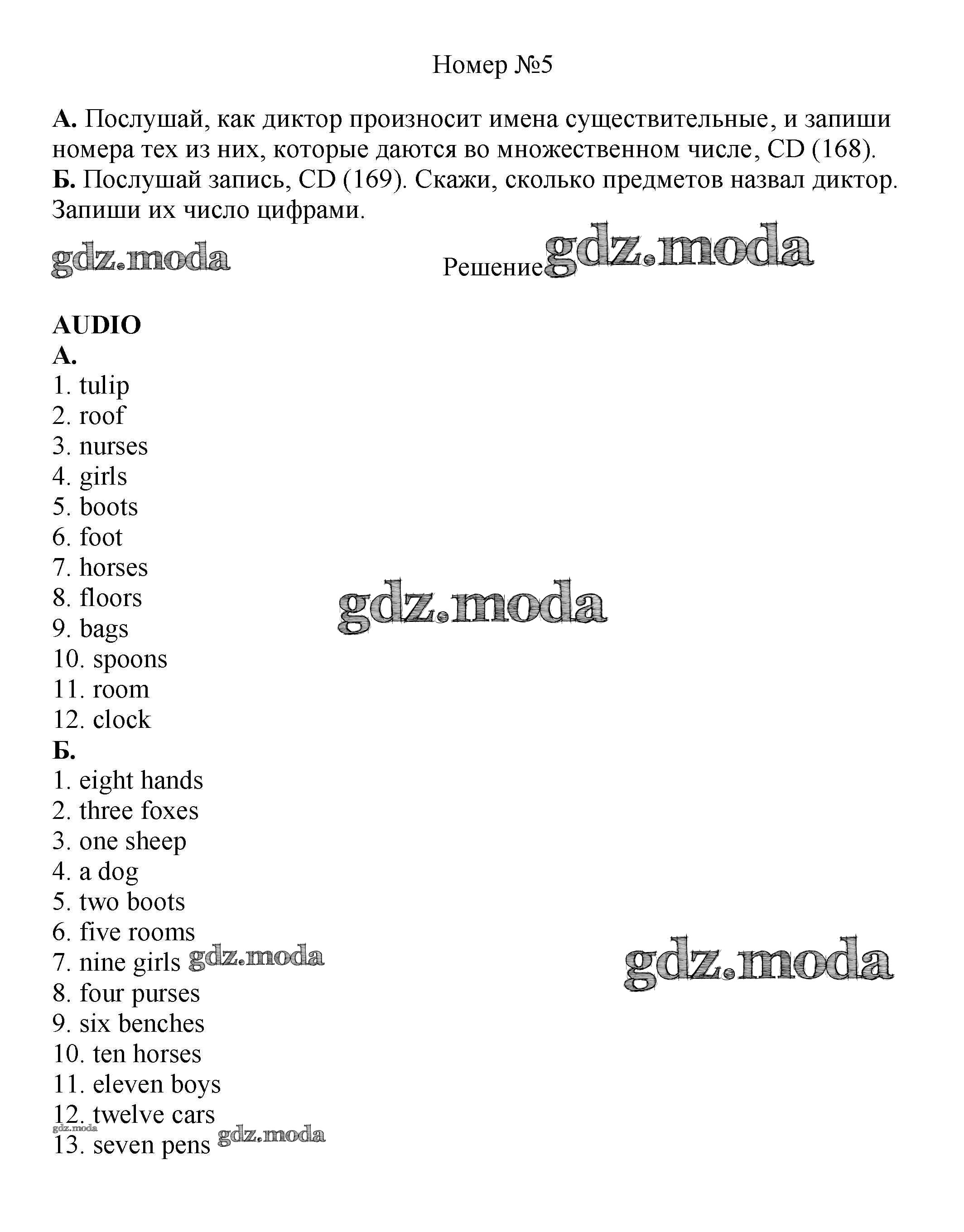 ГДЗ решение к заданию № 5 Английский язык как второй иностранный 5 класс Афанасьева О.В. Дрофа 2017 ФГОС бесплатно на гдз.мода!