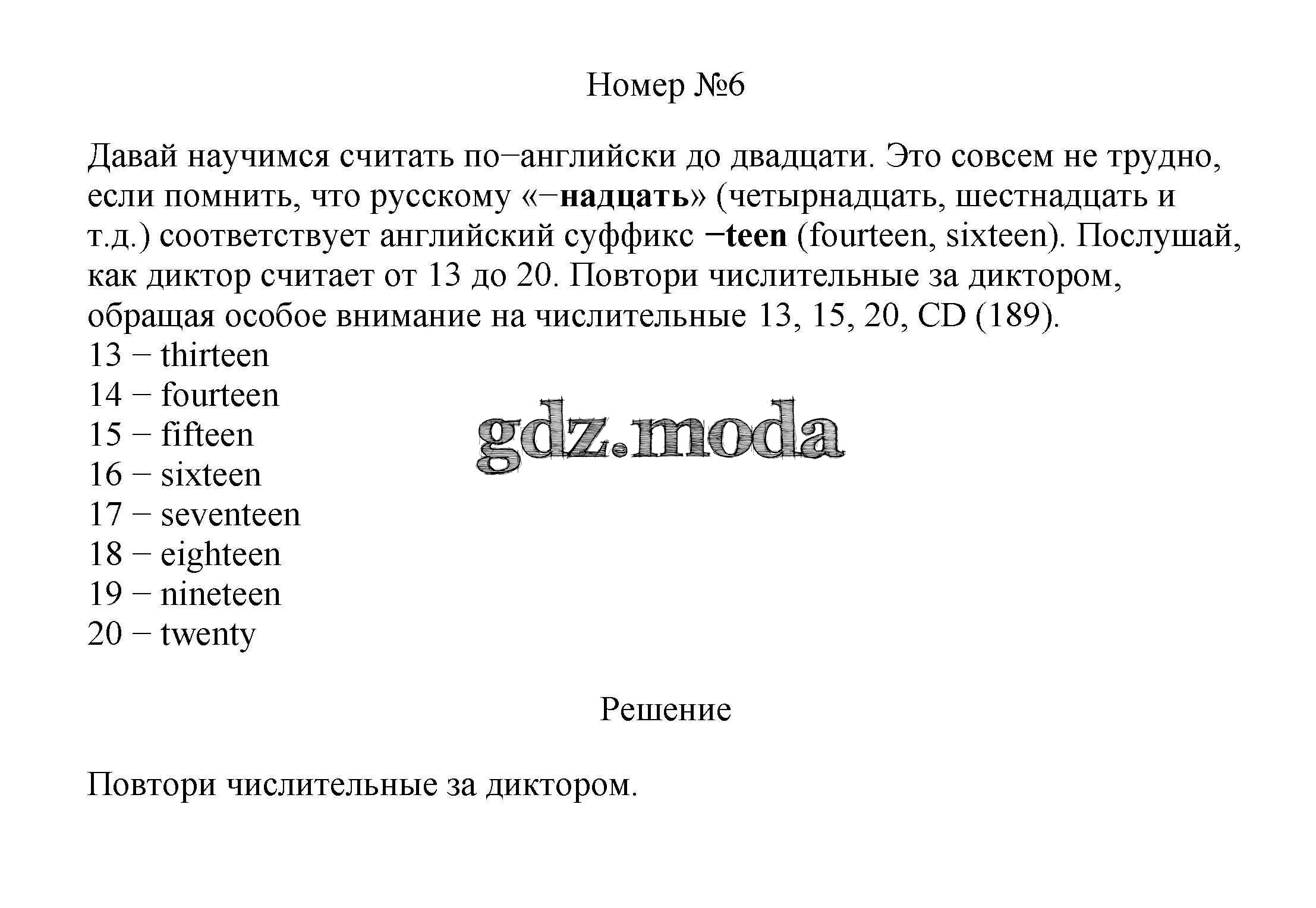 ГДЗ решение к заданию № 6 Английский язык как второй иностранный 5 класс Афанасьева О.В. Дрофа 2017 ФГОС бесплатно на гдз.мода!
