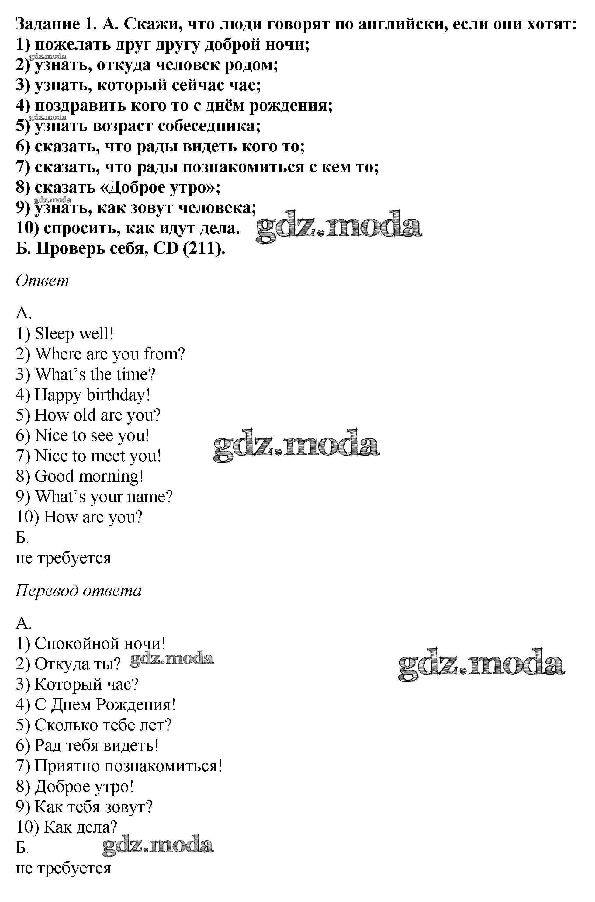 ГДЗ решение к заданию № 1 Английский язык как второй иностранный 5 класс Афанасьева О.В. Дрофа 2017 ФГОС бесплатно на гдз.мода!