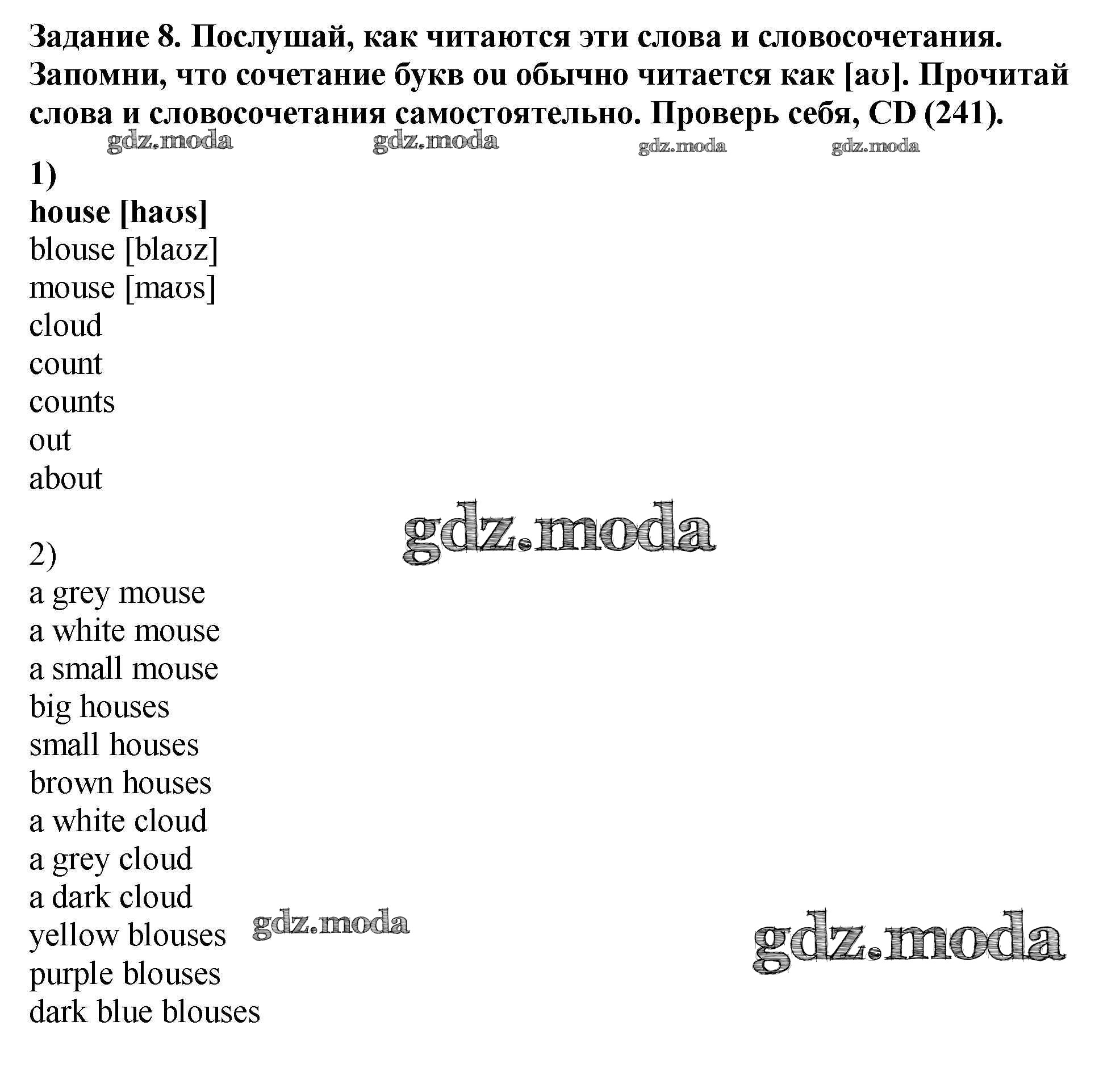 ГДЗ решение к заданию № 8 Английский язык как второй иностранный 5 класс Афанасьева О.В. Дрофа 2017 ФГОС бесплатно на гдз.мода!