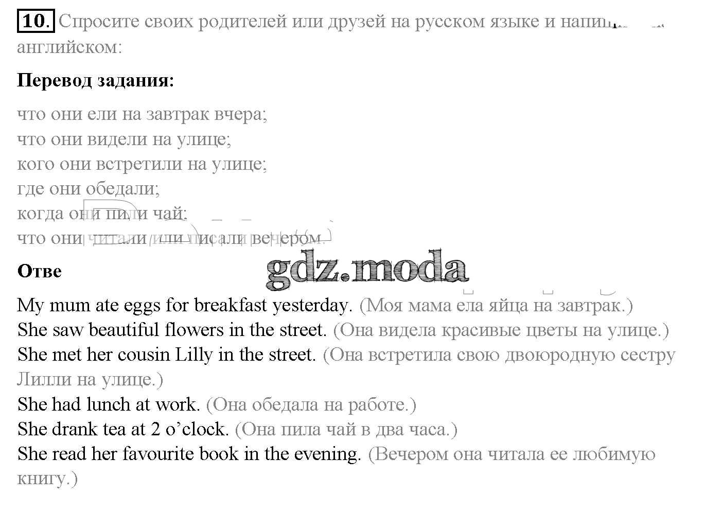 ОТВЕТ на задание № 10 Учебник по Английскому языку 5 класс Афанасьева Rainbow
