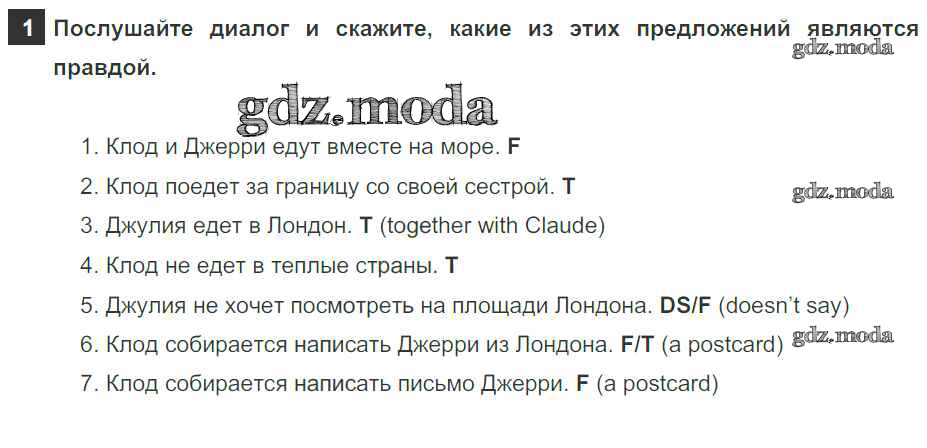 ОТВЕТ на задание № 1 Учебник по Английскому языку 5 класс Афанасьева Rainbow
