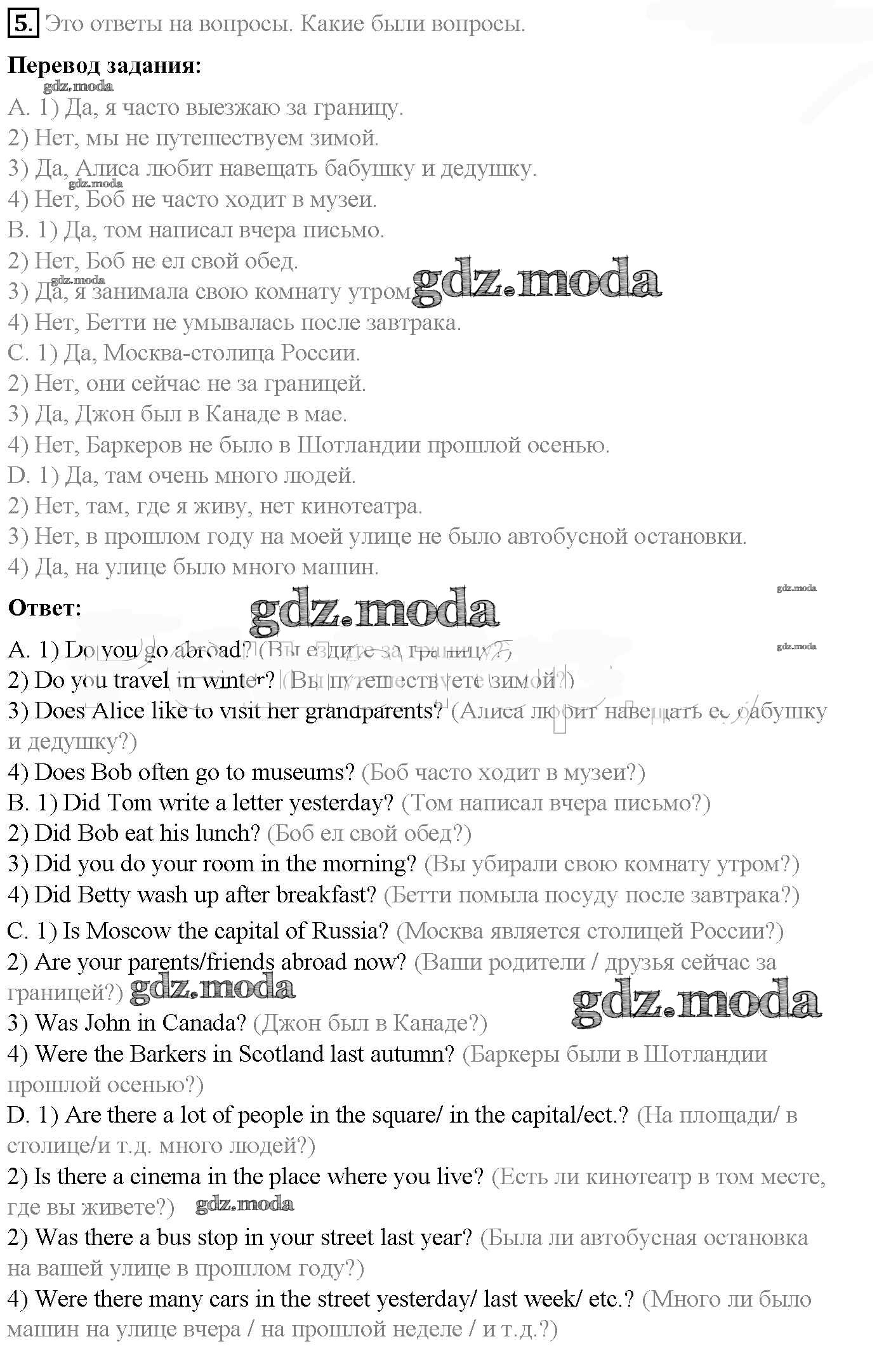ОТВЕТ на задание № 5 Учебник по Английскому языку 5 класс Афанасьева Rainbow