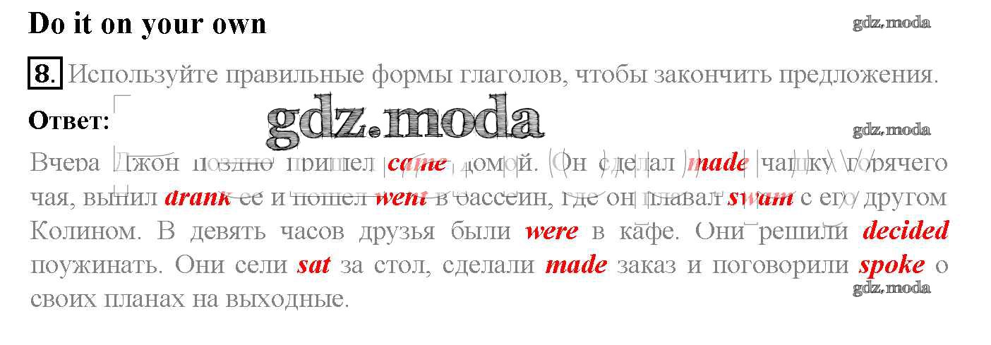 ОТВЕТ на задание № 8 Учебник по Английскому языку 5 класс Афанасьева Rainbow