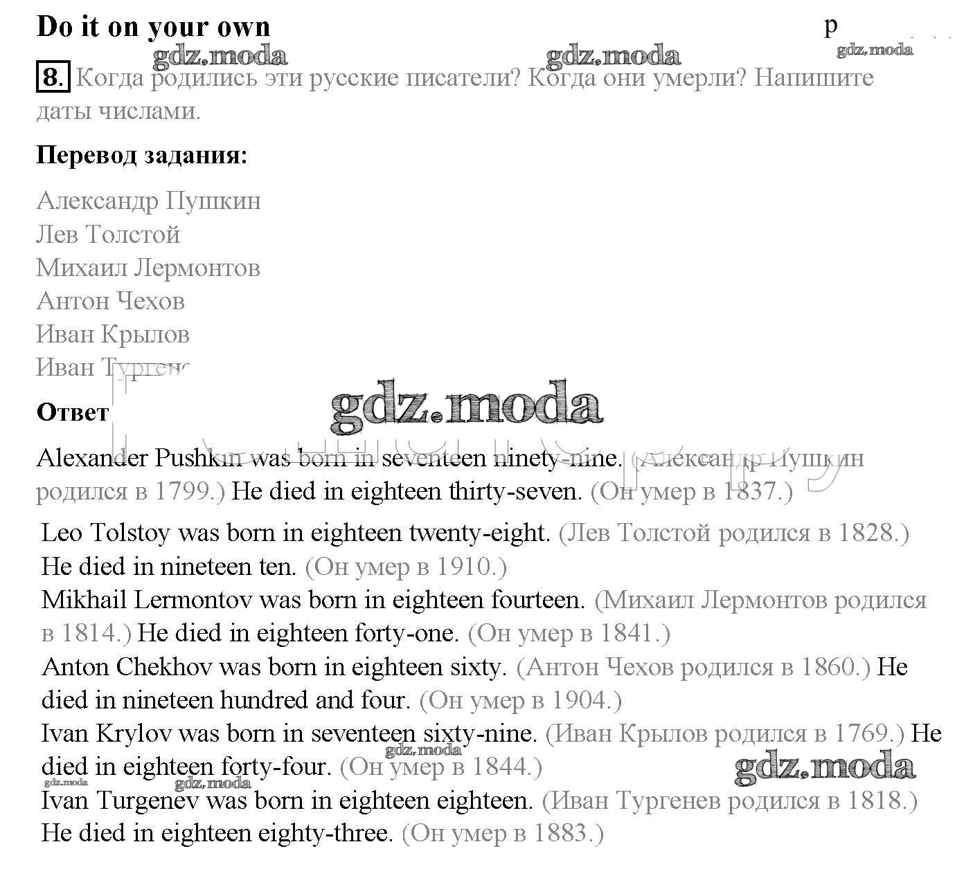 ОТВЕТ на задание № 8 Учебник по Английскому языку 5 класс Афанасьева Rainbow