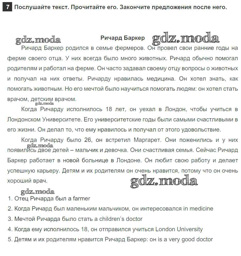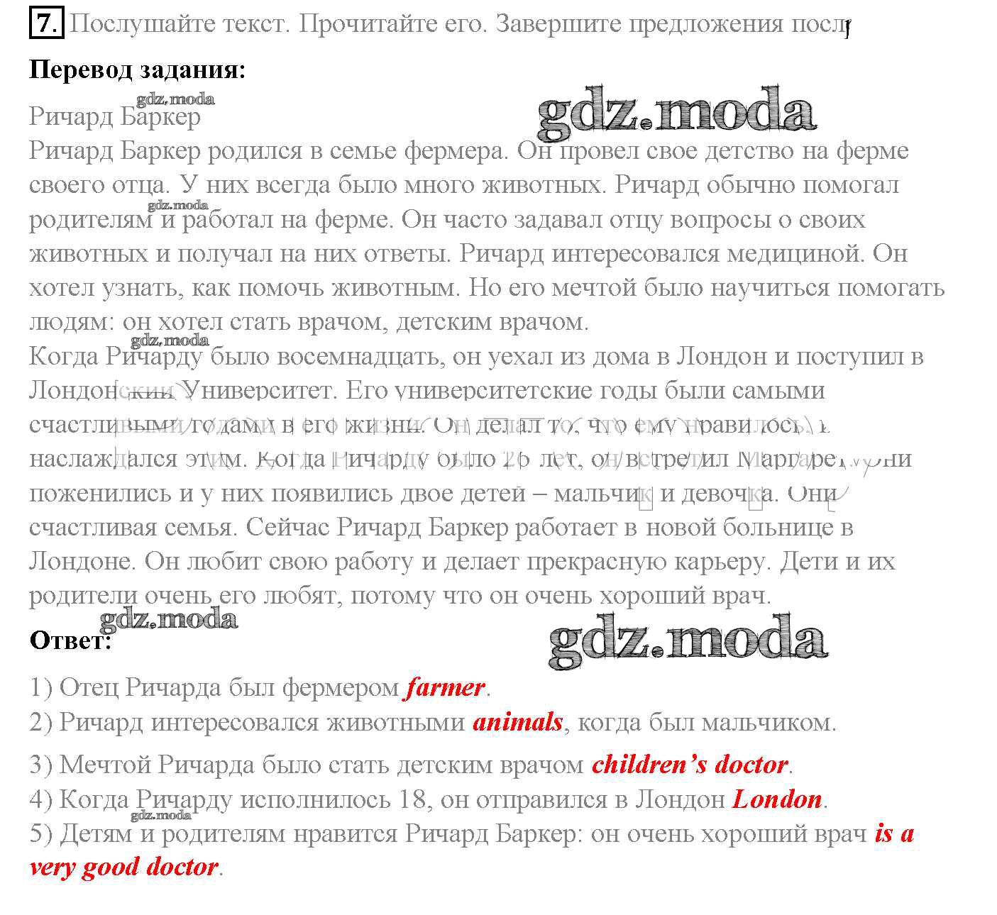 ОТВЕТ на задание № 7 Учебник по Английскому языку 5 класс Афанасьева Rainbow