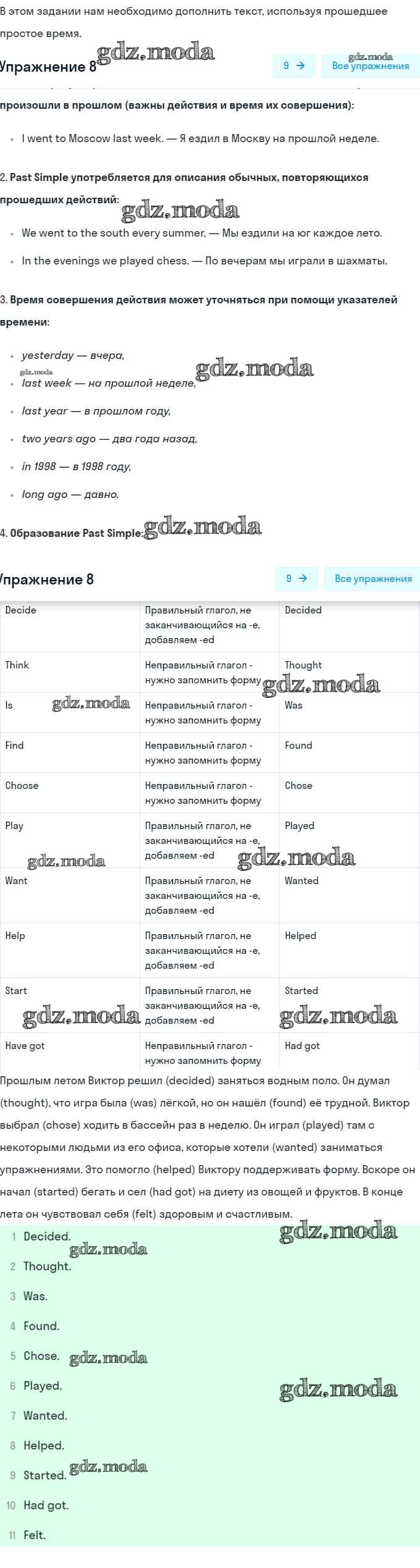 ОТВЕТ на задание № 8 Учебник по Английскому языку 5 класс Афанасьева Rainbow