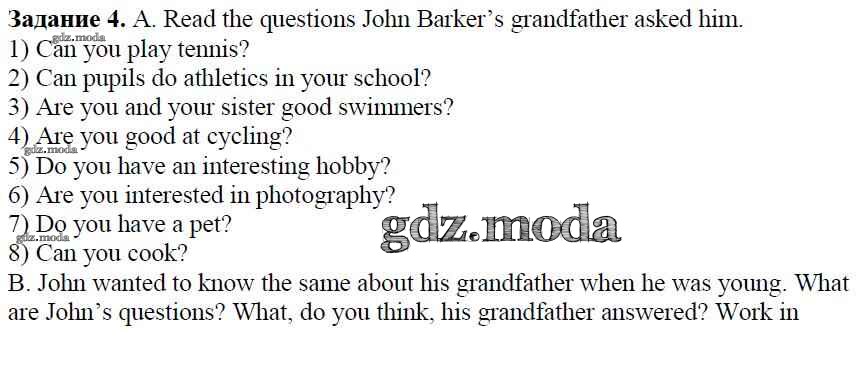 ОТВЕТ на задание № 4 Учебник по Английскому языку 5 класс Афанасьева Rainbow