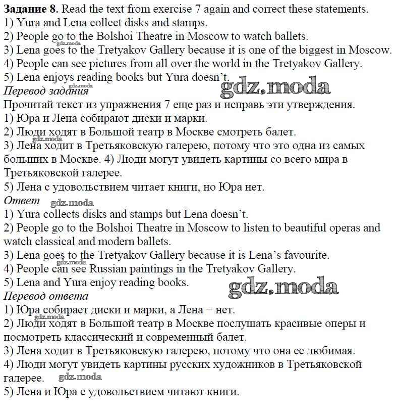 ОТВЕТ на задание № 8 Учебник по Английскому языку 5 класс Афанасьева Rainbow