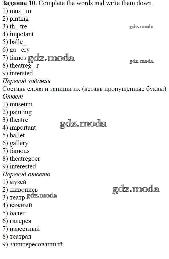 ОТВЕТ на задание № 10 Учебник по Английскому языку 5 класс Афанасьева Rainbow