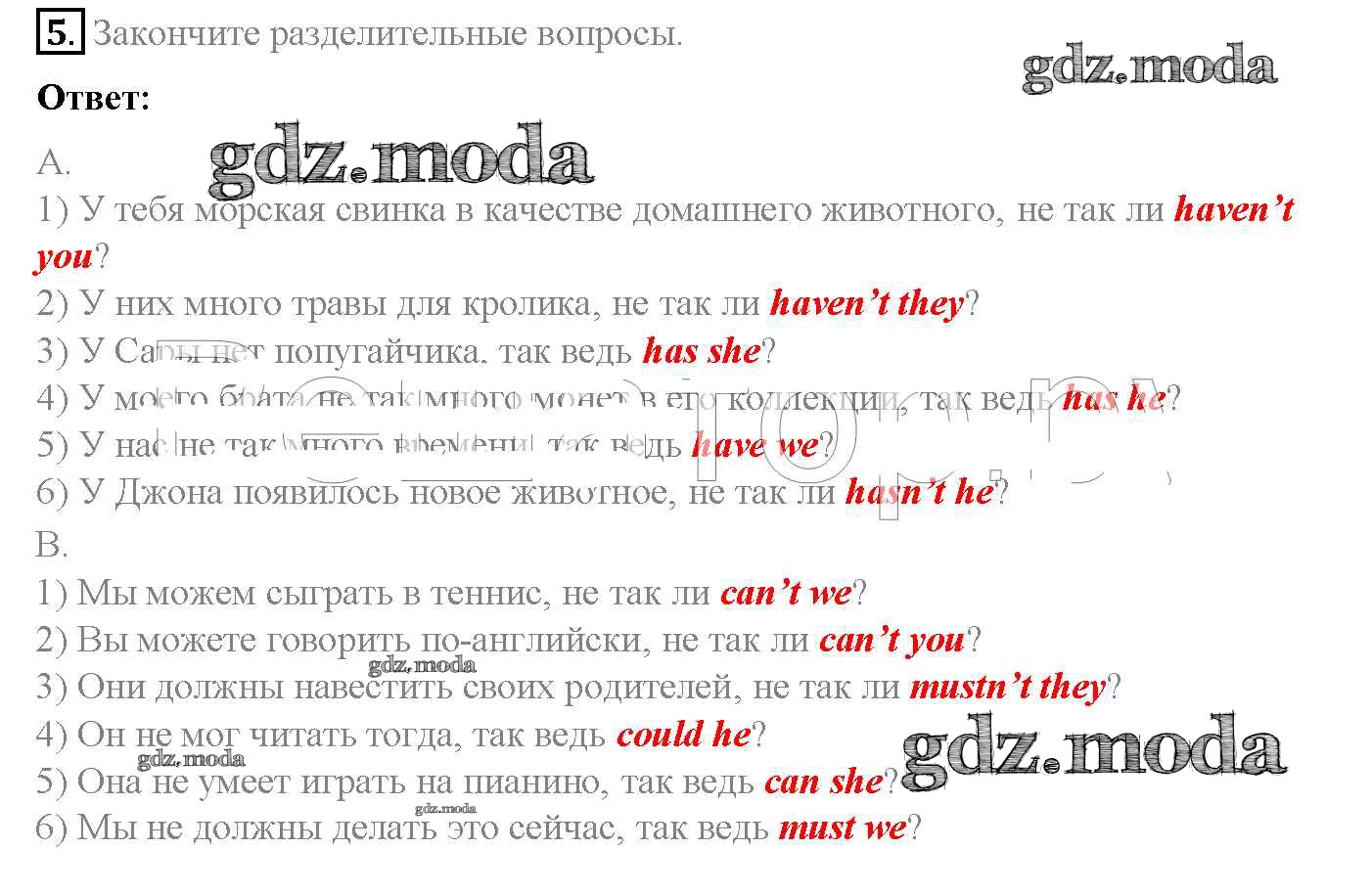 ОТВЕТ на задание № 5 Учебник по Английскому языку 5 класс Афанасьева Rainbow