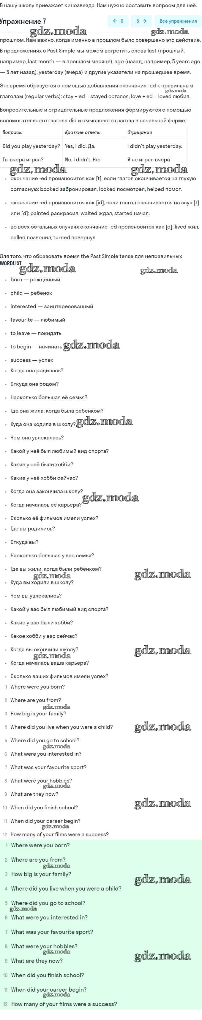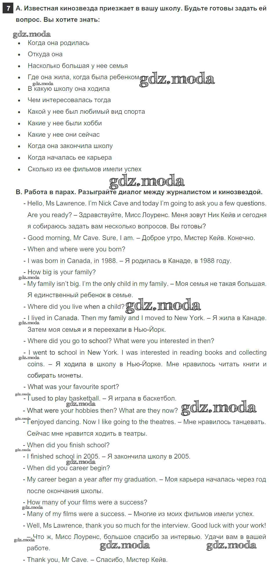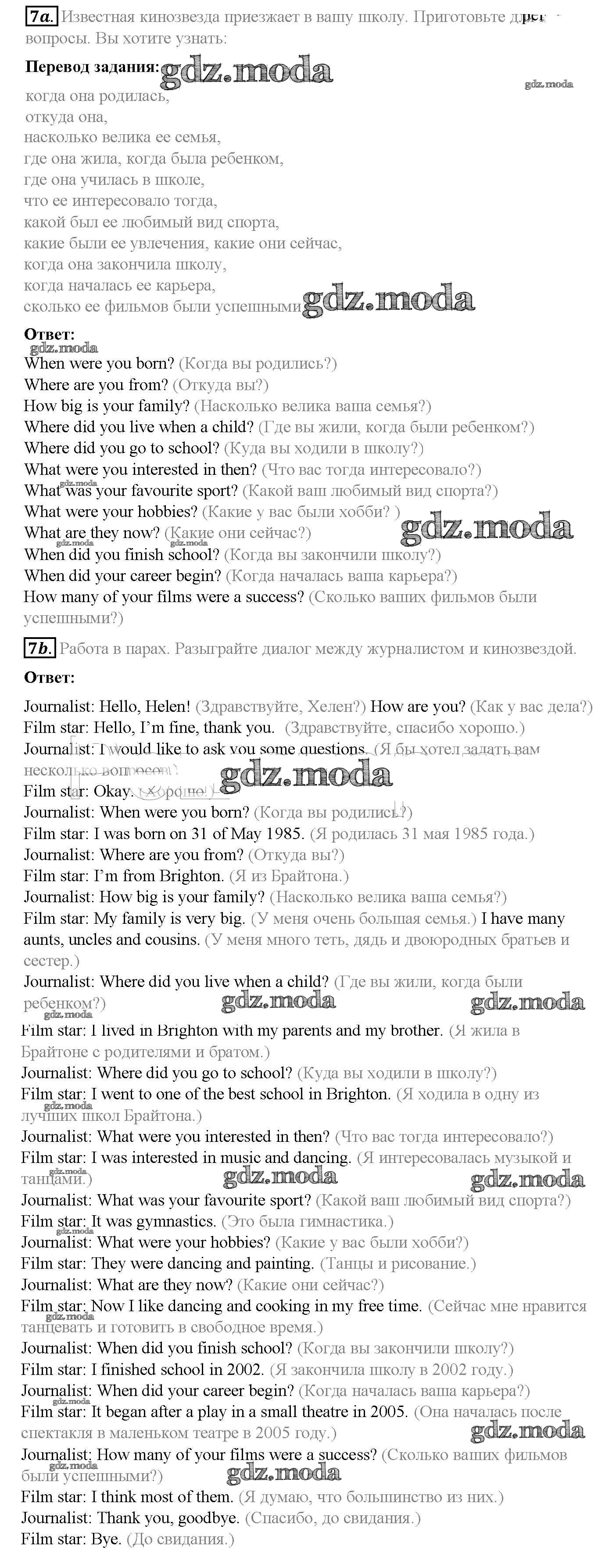 ОТВЕТ на задание № 7 Учебник по Английскому языку 5 класс Афанасьева Rainbow