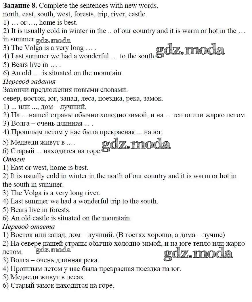 ОТВЕТ на задание № 8 Учебник по Английскому языку 5 класс Афанасьева Rainbow