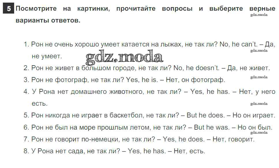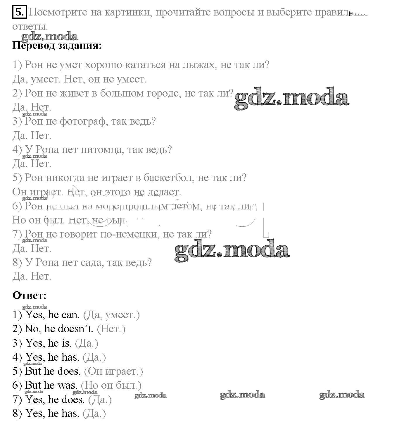 ОТВЕТ на задание № 5 Учебник по Английскому языку 5 класс Афанасьева Rainbow