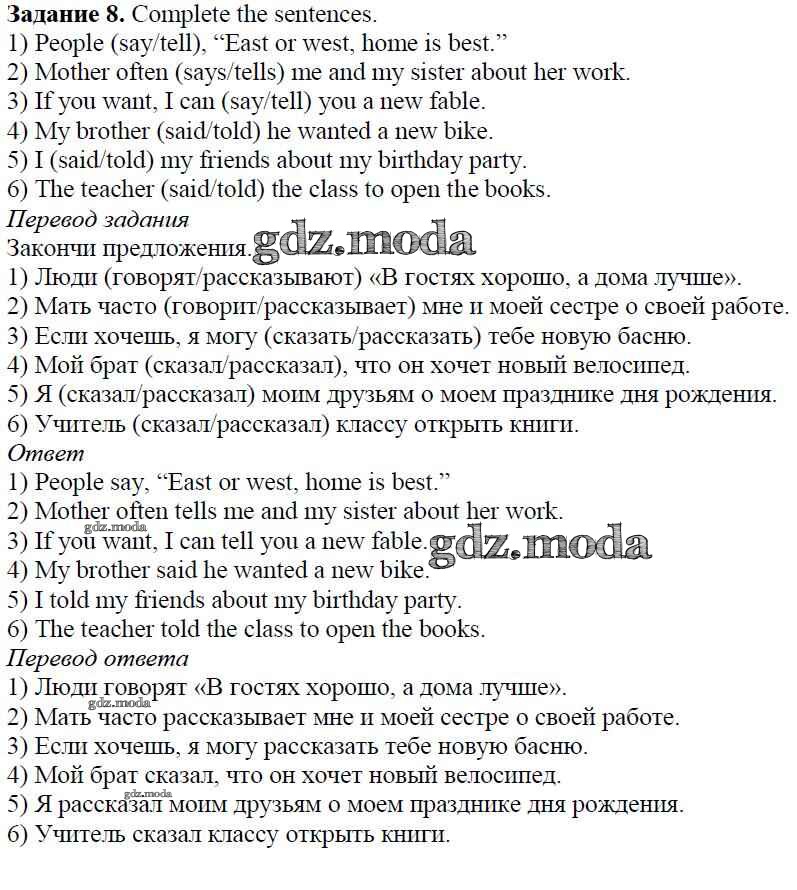 ОТВЕТ на задание № 8 Учебник по Английскому языку 5 класс Афанасьева Rainbow