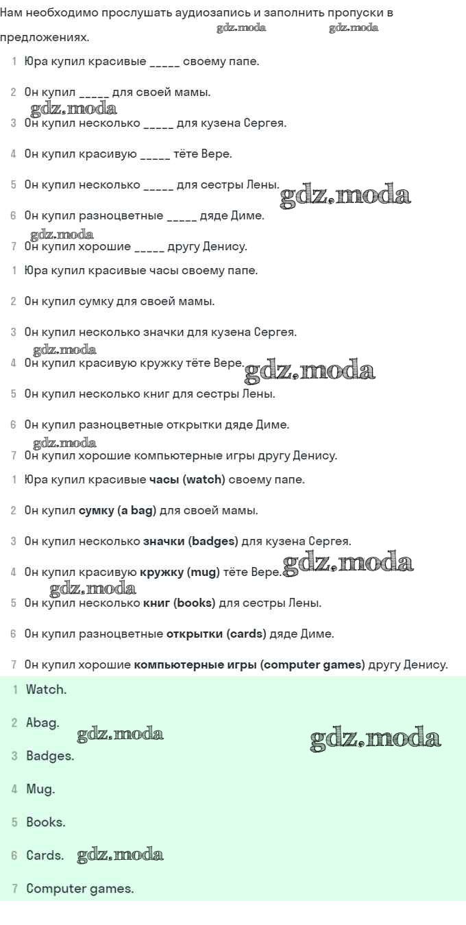 ОТВЕТ на задание № 7 Учебник по Английскому языку 5 класс Афанасьева Rainbow