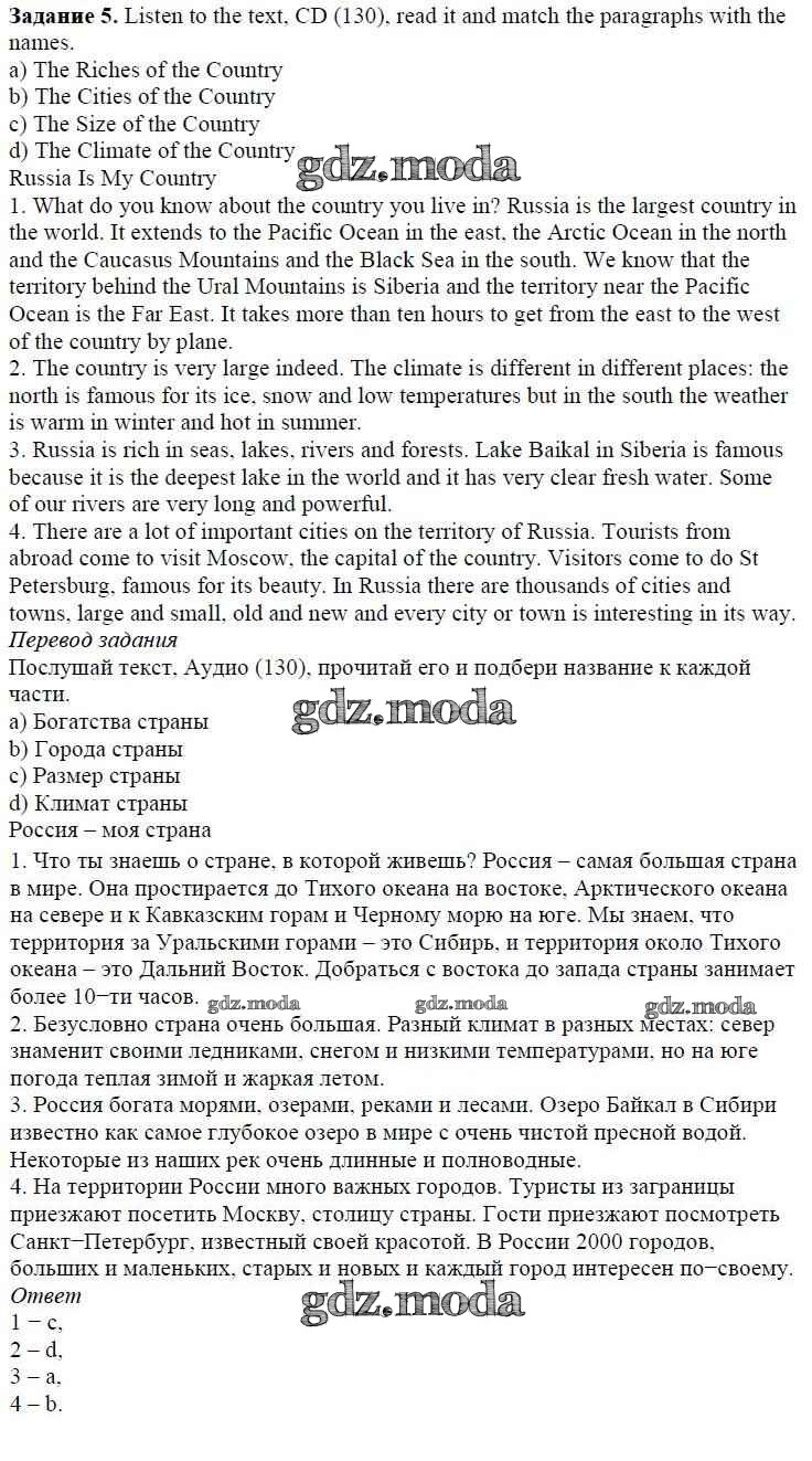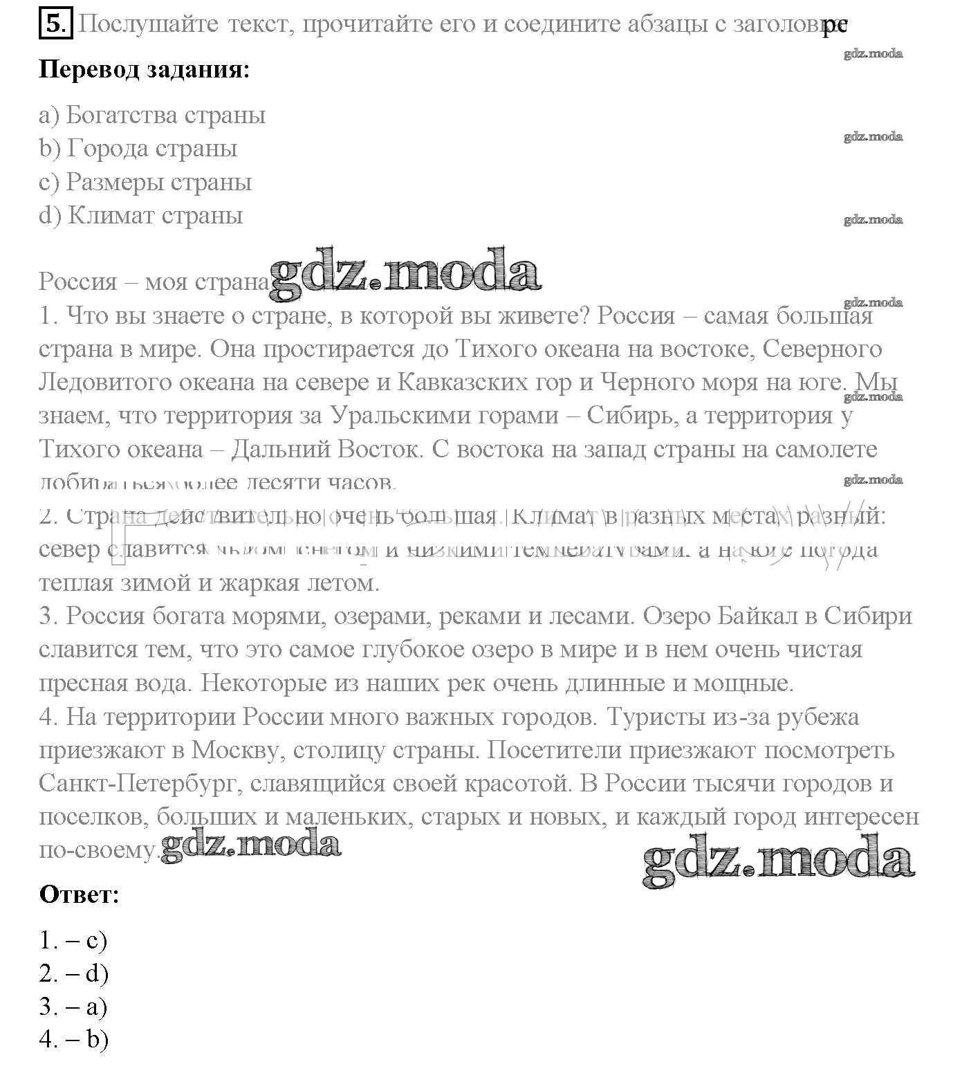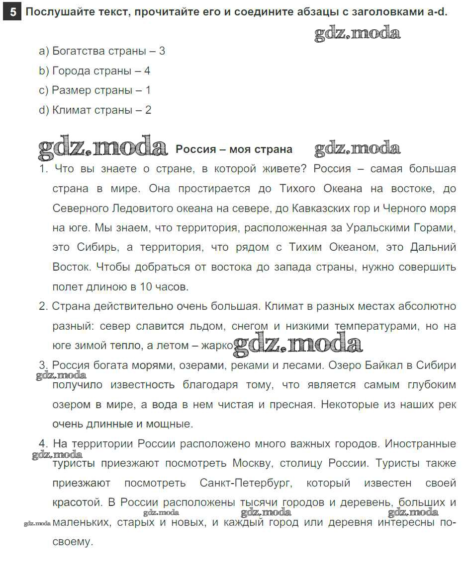 ОТВЕТ на задание № 5 Учебник по Английскому языку 5 класс Афанасьева Rainbow