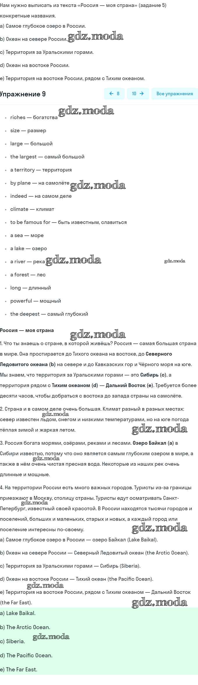 ОТВЕТ на задание № 9 Учебник по Английскому языку 5 класс Афанасьева Rainbow
