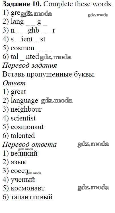 ОТВЕТ на задание № 10 Учебник по Английскому языку 5 класс Афанасьева Rainbow