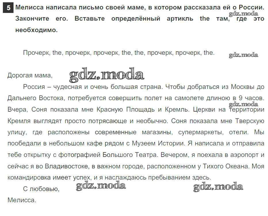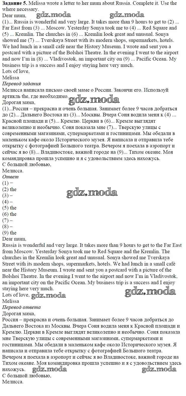 ОТВЕТ на задание № 5 Учебник по Английскому языку 5 класс Афанасьева Rainbow