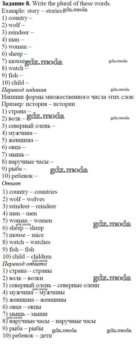 ОТВЕТ на задание № 8 Учебник по Английскому языку 5 класс Афанасьева Rainbow