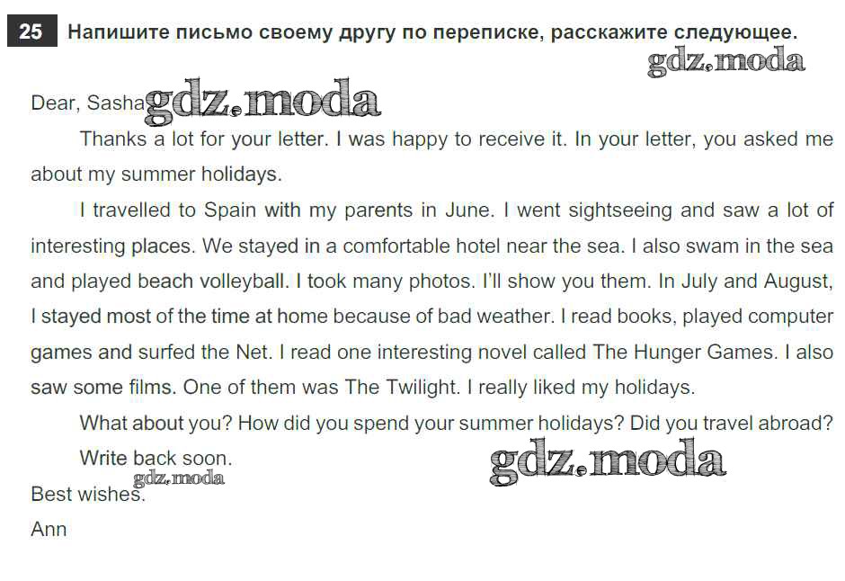 ОТВЕТ на задание № 25 Рабочая тетрадь по Английскому языку 5 класс Афанасьева Rainbow