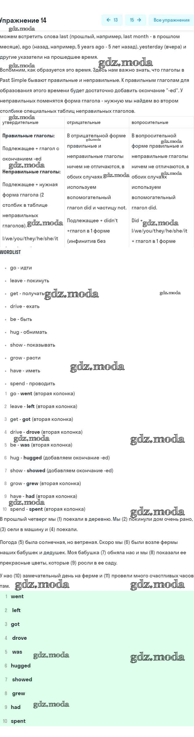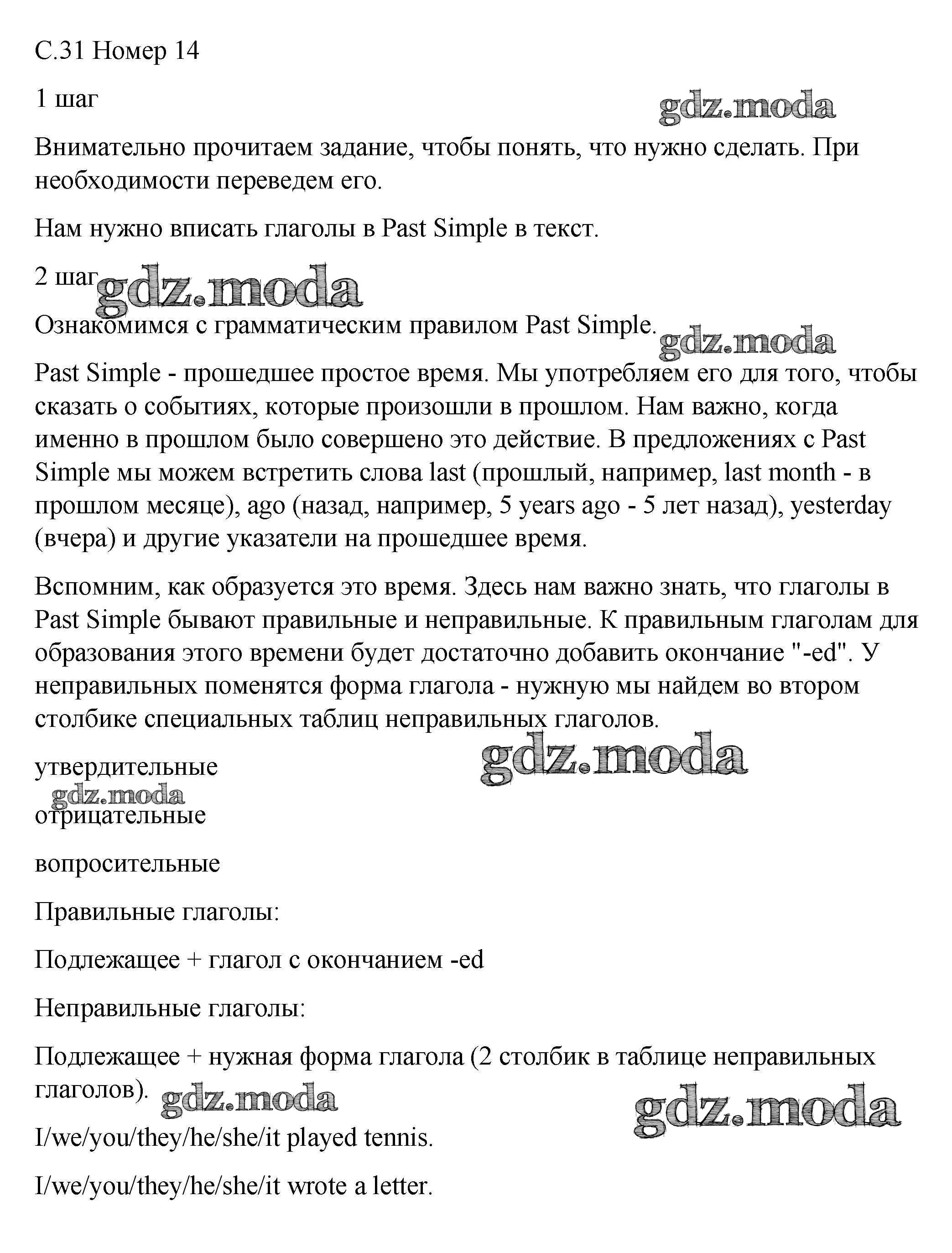 ОТВЕТ на задание № 14 Рабочая тетрадь по Английскому языку 5 класс Афанасьева Rainbow
